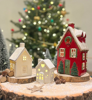 LED Ceramic Christmas House | Light Up House Christmas Village Ornament - 15cm