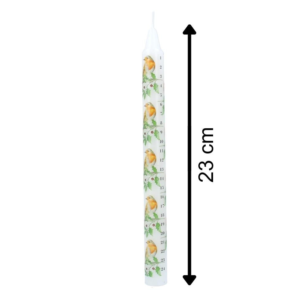 Robin & Holly Advent Countdown Candle | Numbered Christmas Candle Calendar 23cm