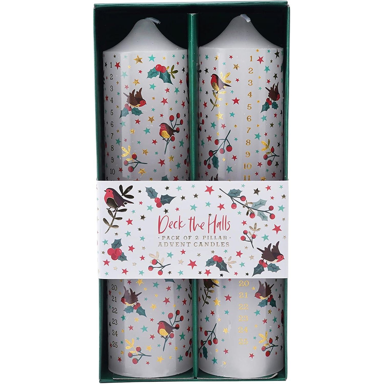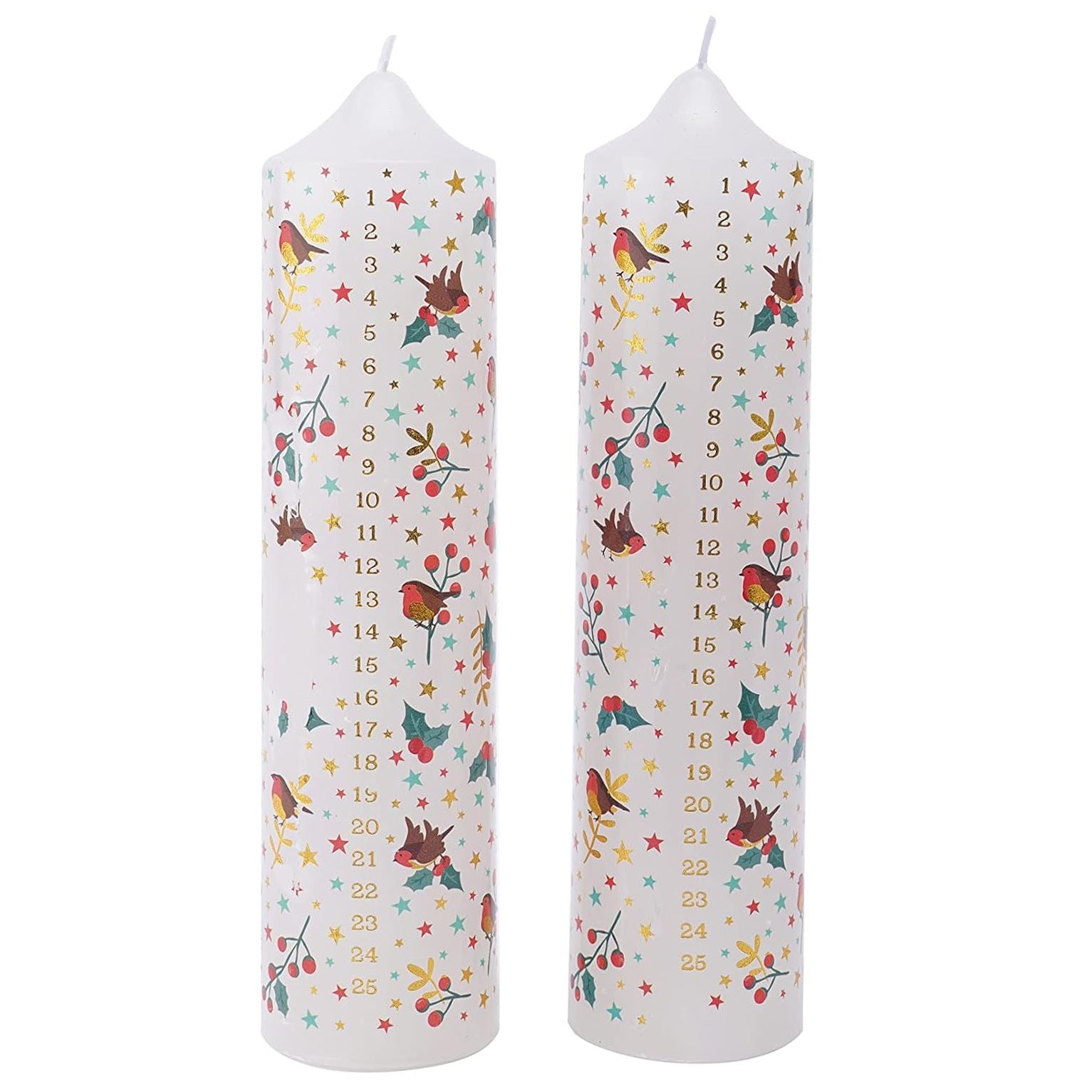 CHRISTMAS CANDLES | Embrace the holiday spirit with these beautiful Advent candles. Each candle is adorned with a festive sleeve featuring robins and holly, adding a touch of festive cheer to your daily countdown. Light them up to bring a smile as Christmas draws closer