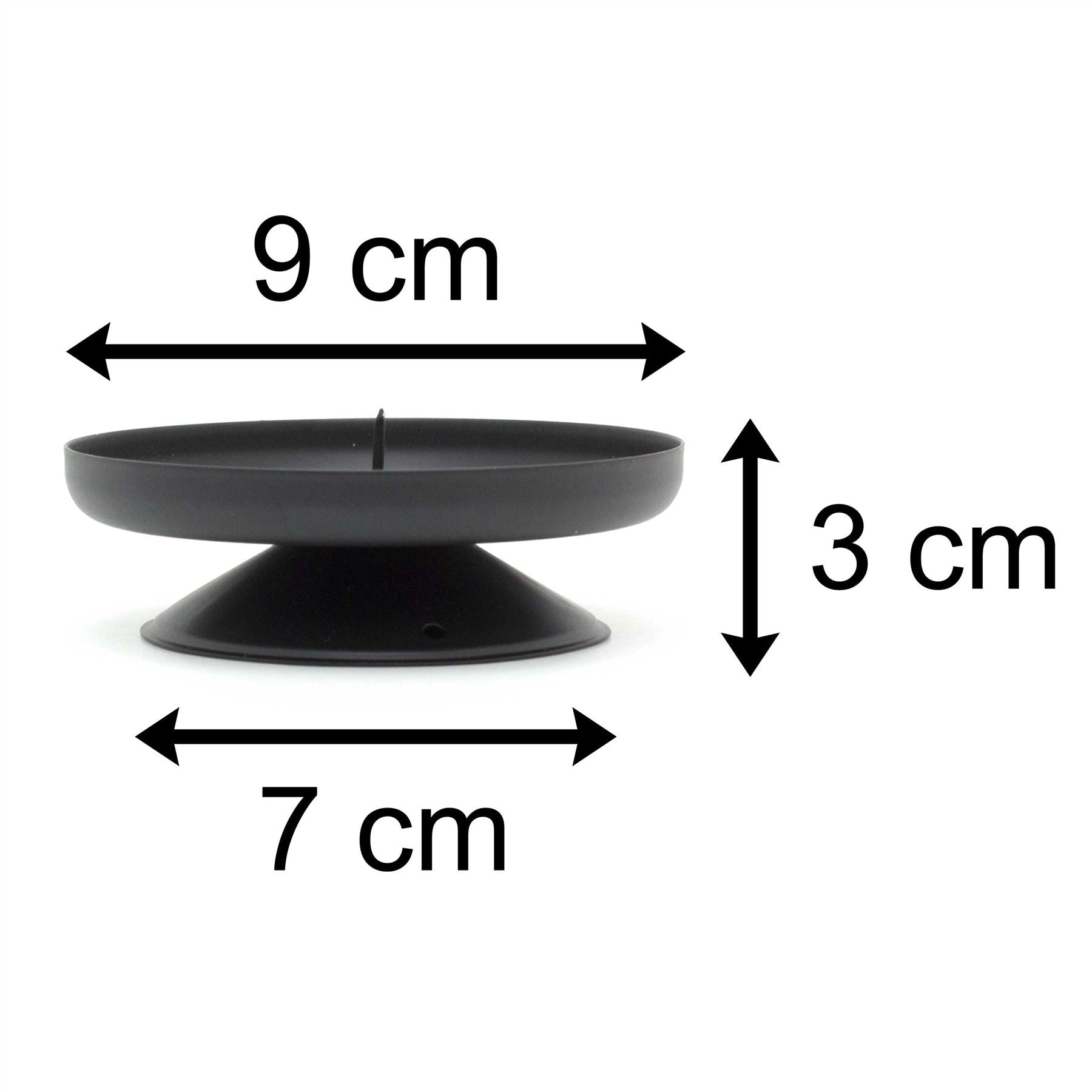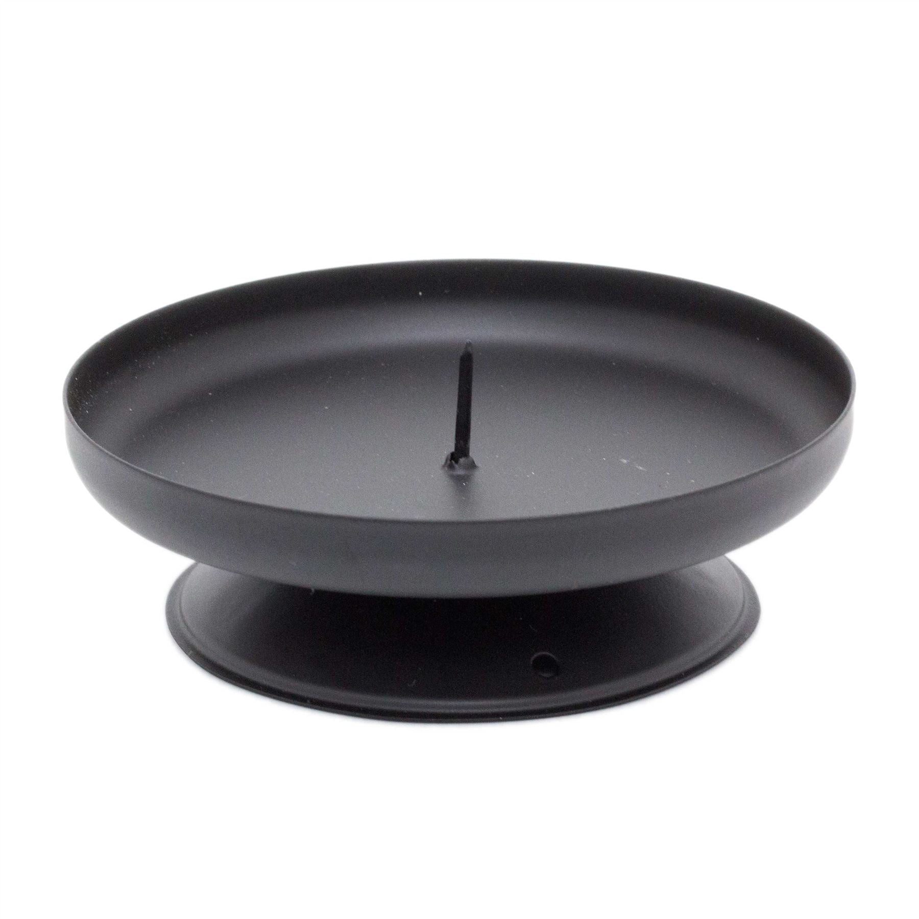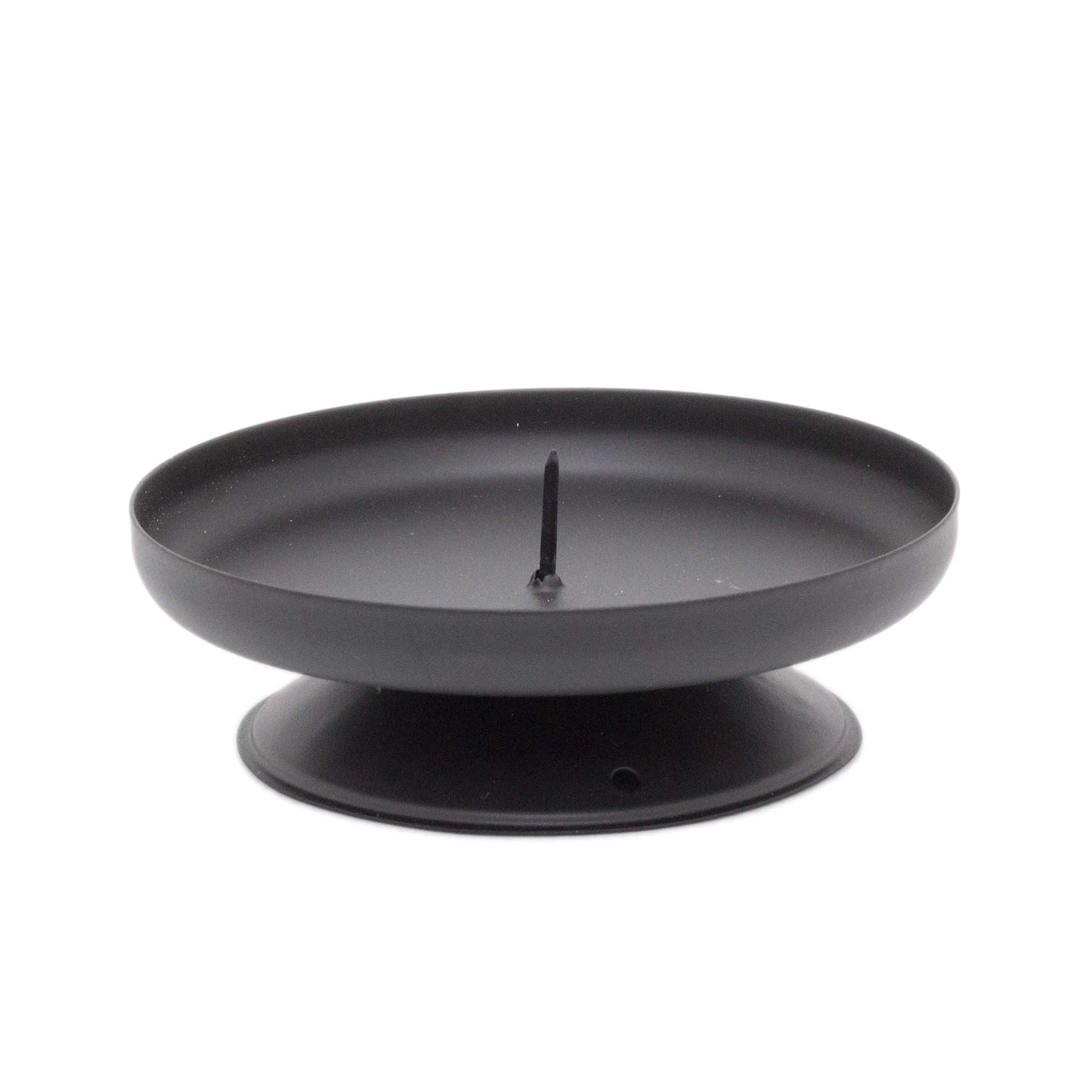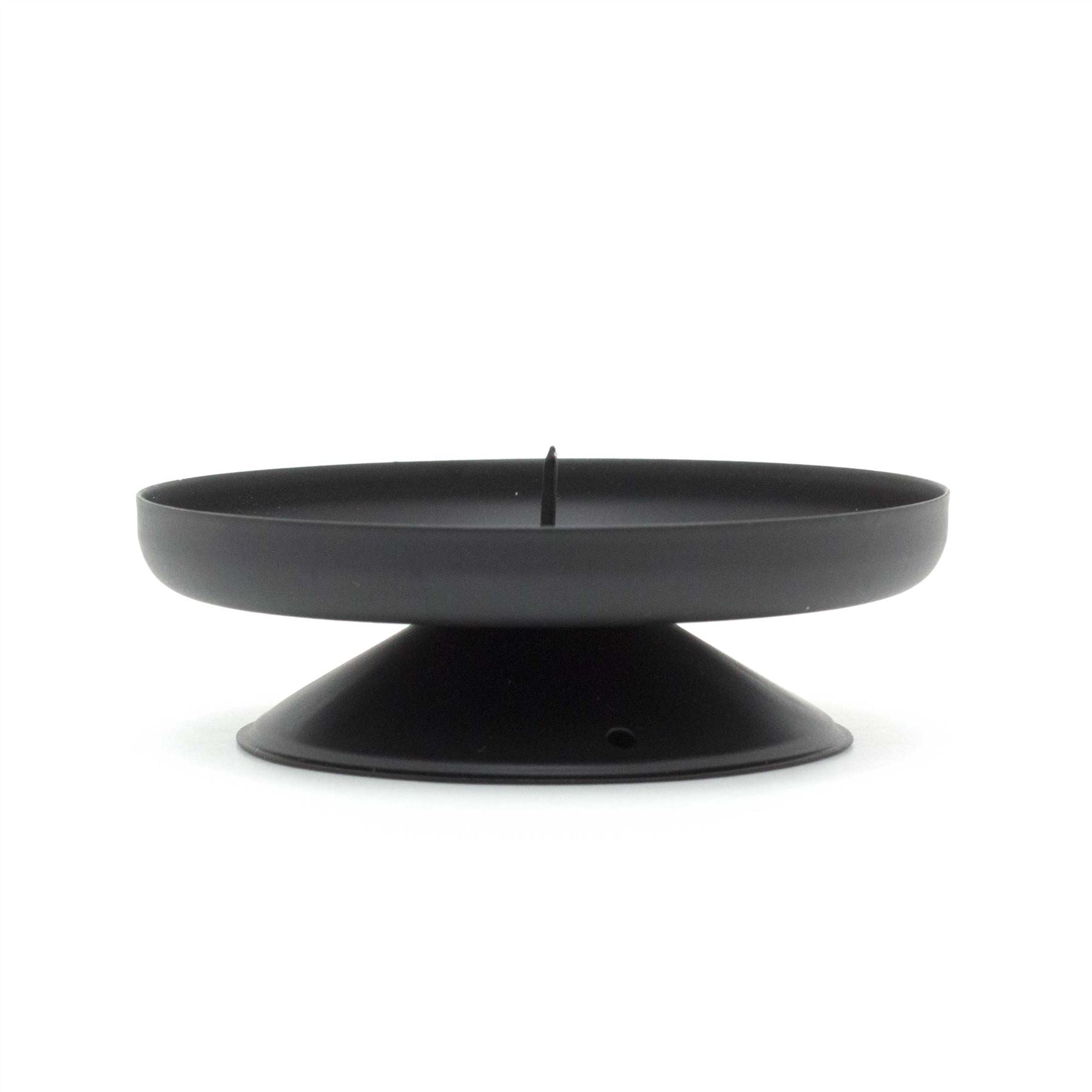 CANDLE HOLDER: Fabulously simple mat black metal pillar candle holder complete with spike to hold the candle in place. Looks super with a red or ivory candle contrasting with the black. Just perfect for protecting your surfaces whilst not drawing attention away from your decorative pieces