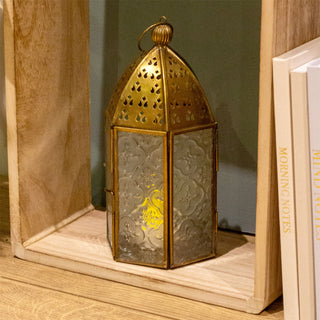 Gold Metal Kasbah Candle Lantern | Moroccan Style Lantern Tealight Holder - 21cm