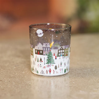 The Christmas Market Tealight Holder | Round Glass Christmas Candle Holder - 8cm