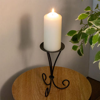 Tall Black Metal Scroll Candle Holder | Pillar Candle Holder Candlestick - 21cm