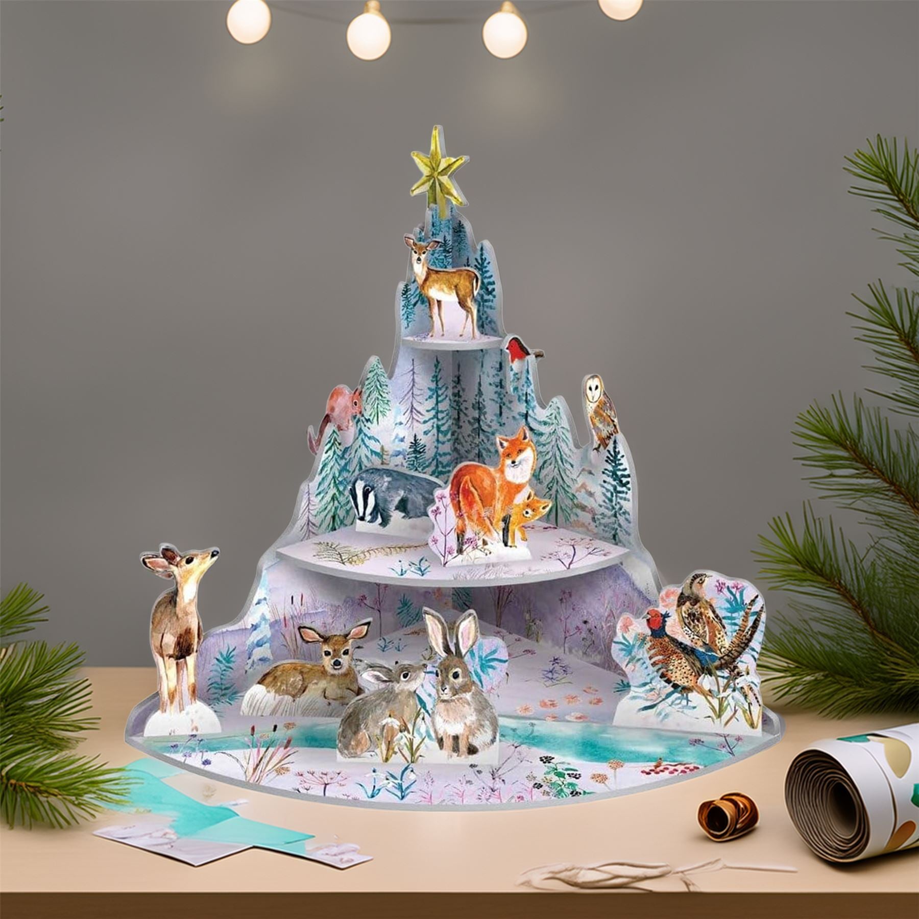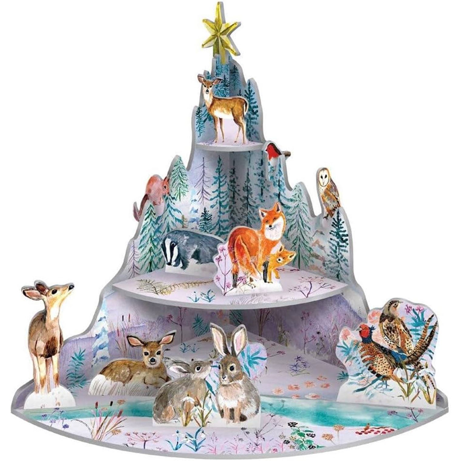 Watch woodland creatures gather by a frozen stream in this Pop & Slot winter scene. A magical 3D Christmas decoration full of wild charm