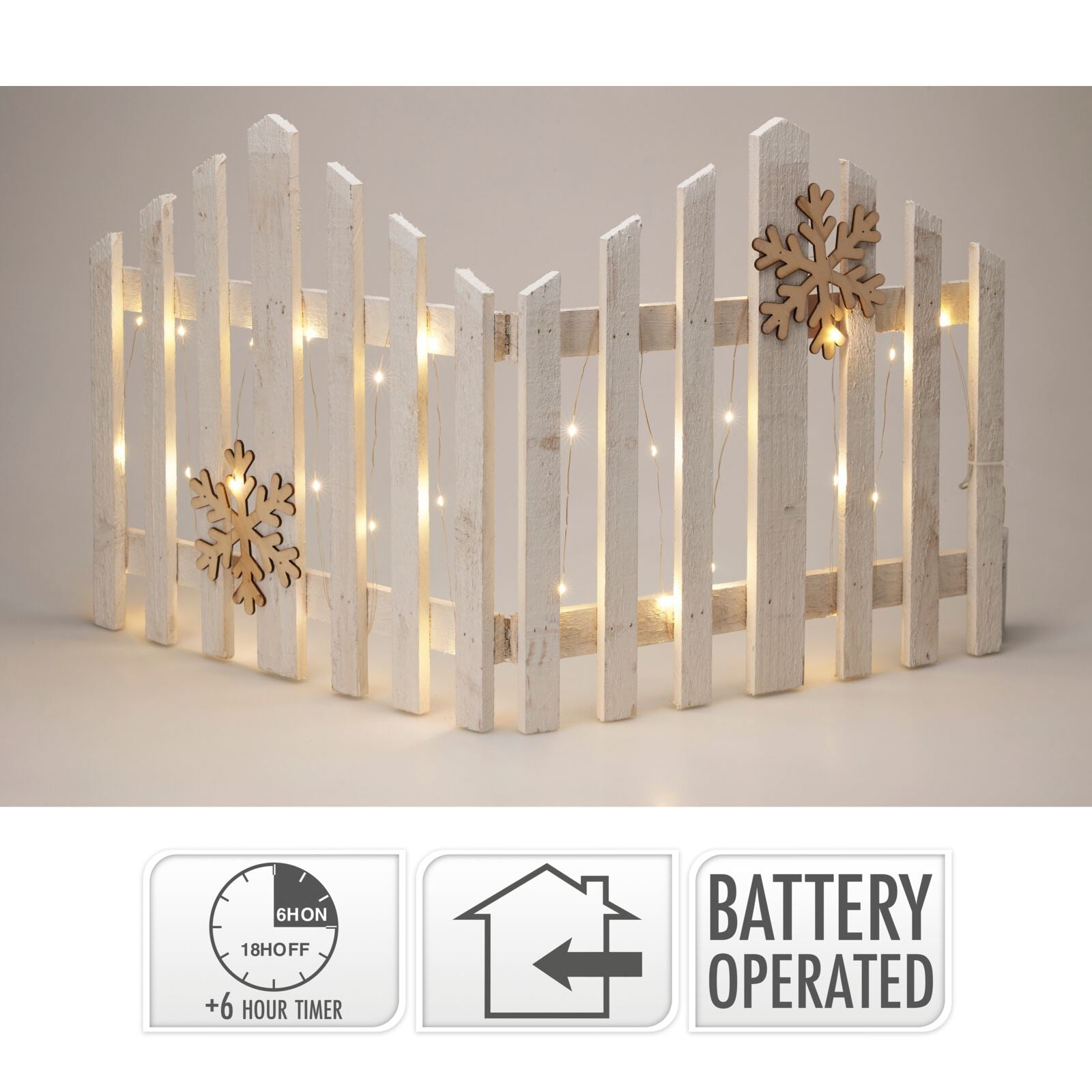 Bring festive charm to your home with this 38 cm LED wooden picket fence. Snow-capped and softly lit, it’s the perfect cosy border for your Christmas tree