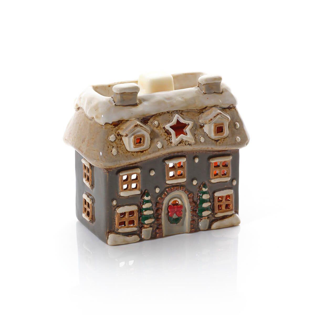 Fill your home with festive fragrance and cosy Christmas charm with this grey stoneware cottage wax melt burner. With its snowy roof, cheerful wreath and glowing windows, it adds warmth, light and delightful seasonal scent to any room