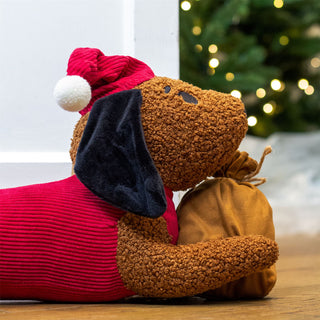 Christmas Dog Draught Excluder | Boucle Fabric Dog Draft Cushion for Doors 85cm