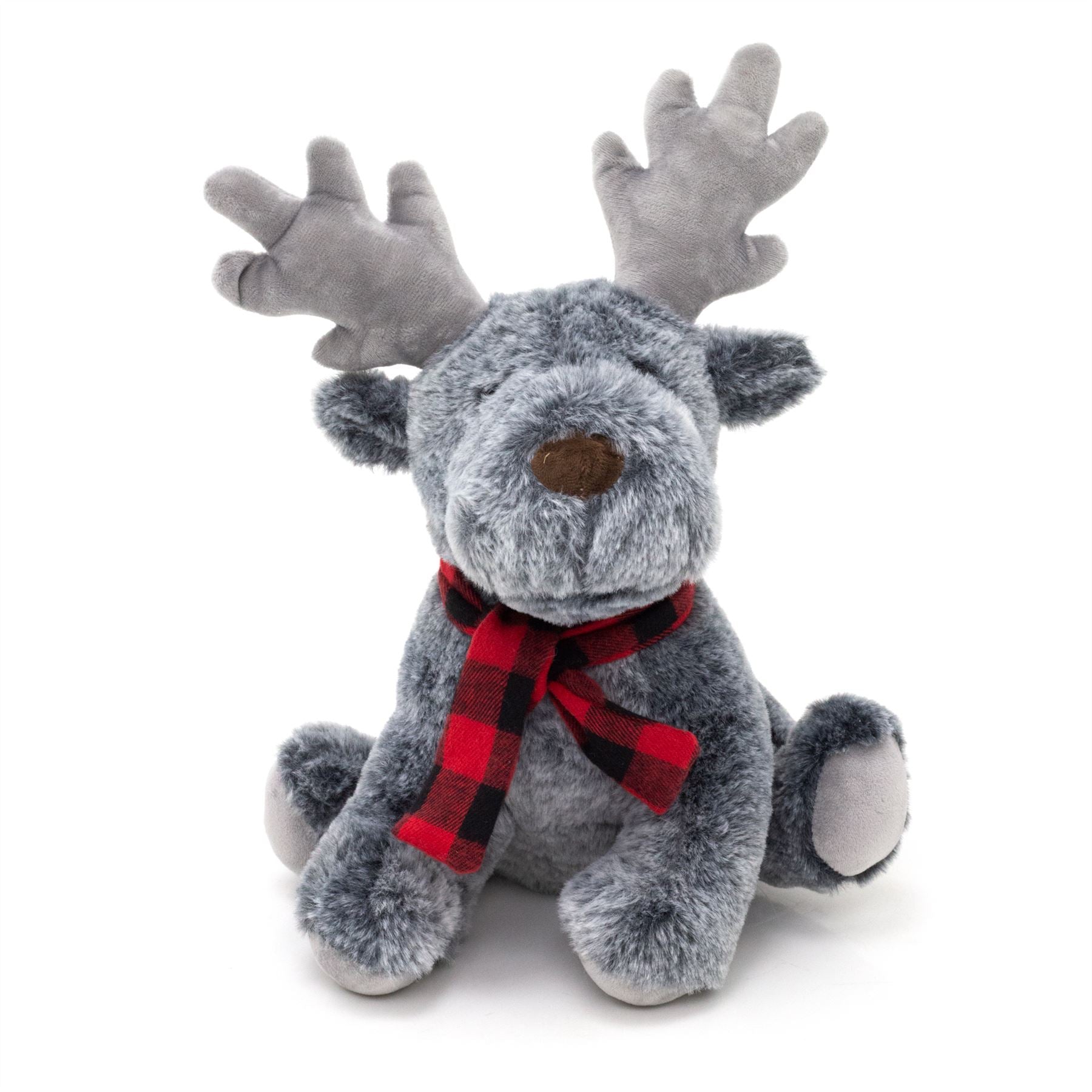 FESTIVE CHARM | Featuring a red and black checkered scarf and cute plush antlers, this reindeer doorstop brings a festive vibe that suits any home, especially during the holiday season