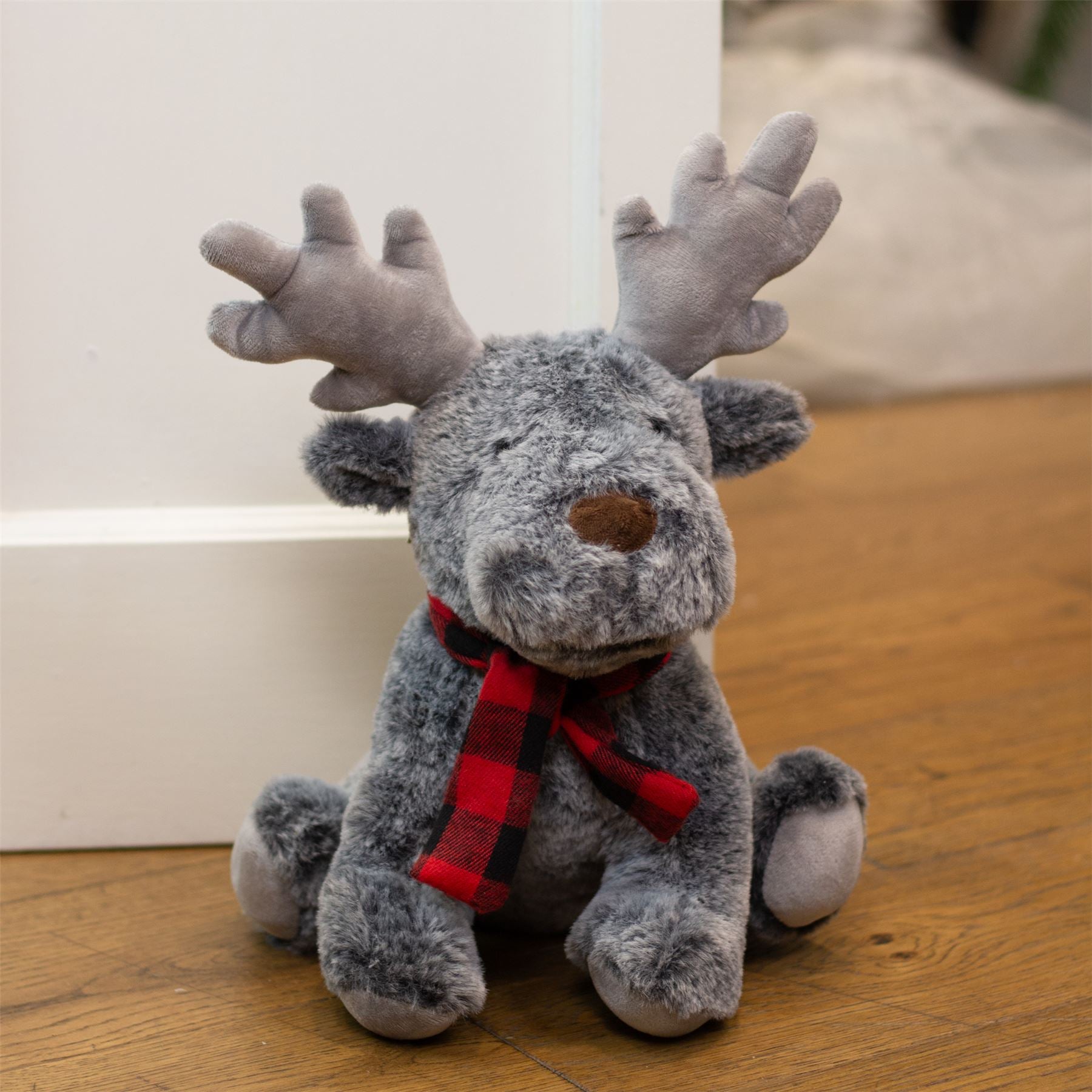 Alfie Reindeer Doorstop | Christmas Door Stop with Antlers & Checkered Scarf