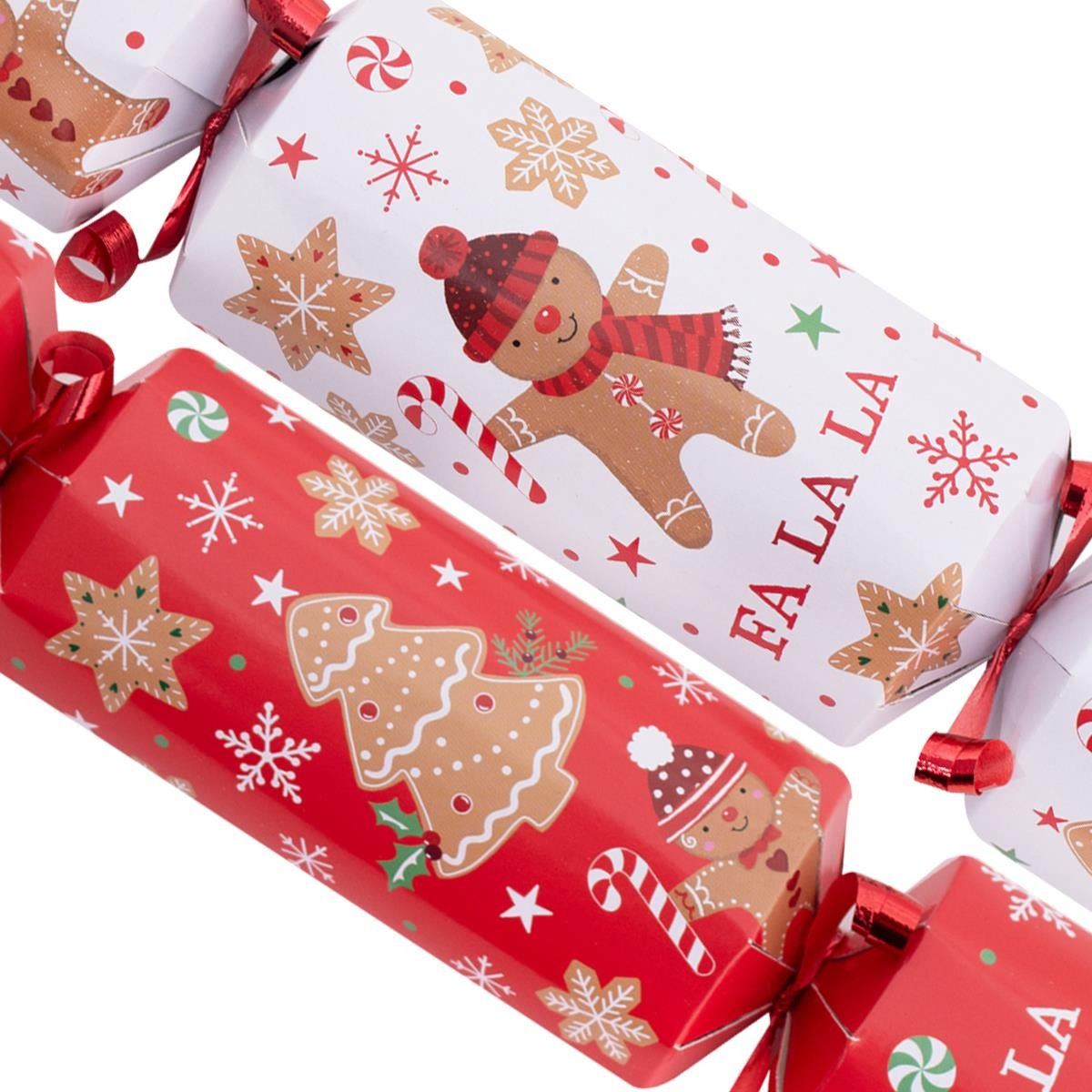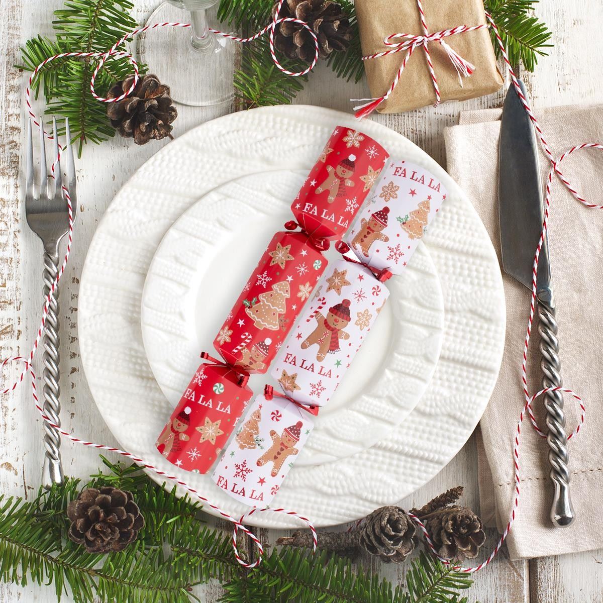 PLAYFUL DESIGN | Each cracker features a cheerful gingerbread design with curling ribbons, a bright, festive addition to your Christmas table