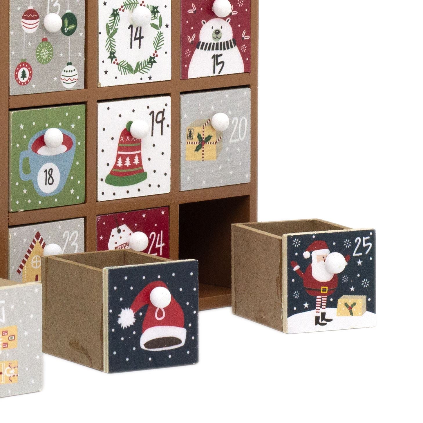 25-DRAWER COUNTDOWN | Features 25 pull-out drawers with wooden knobs, ready to be filled with sweets, toys, or notes for a joyful Christmas countdown