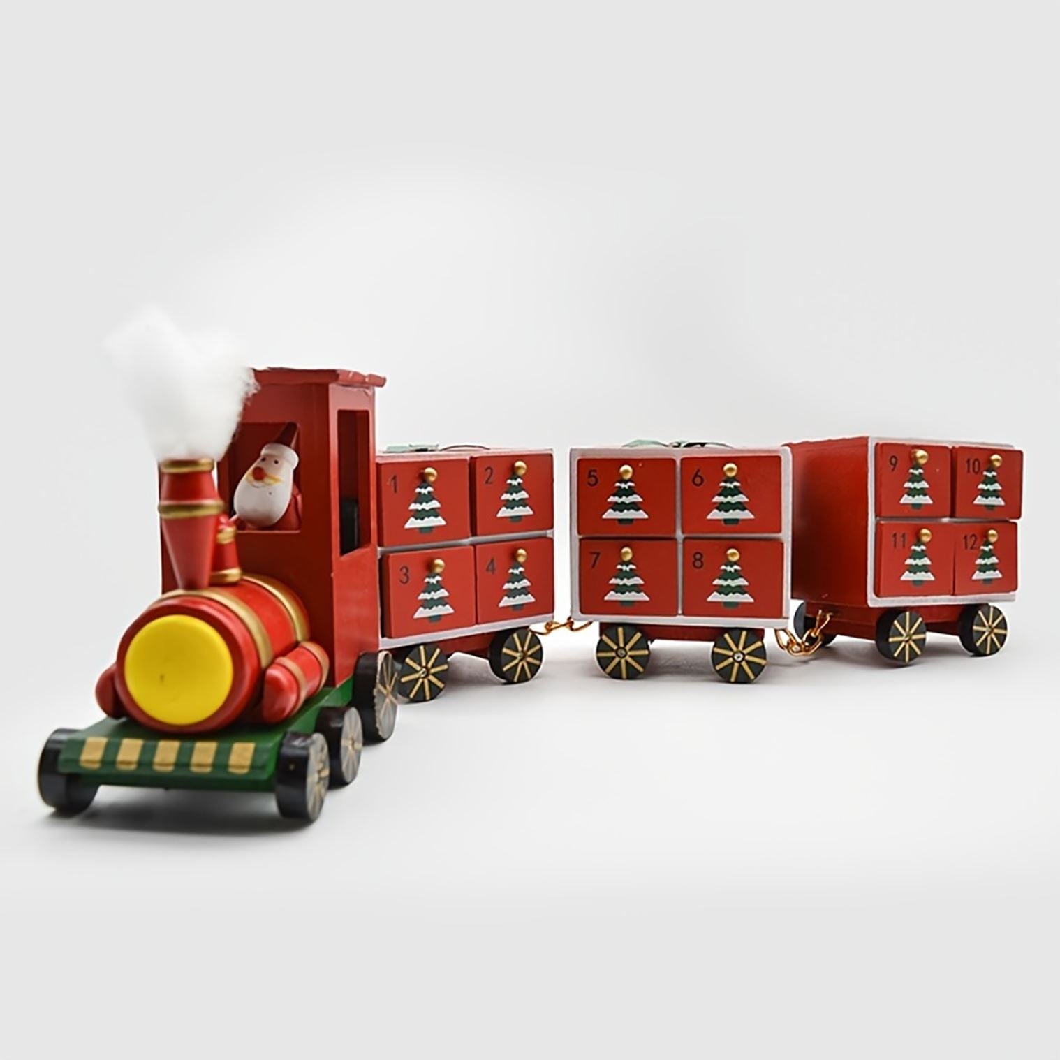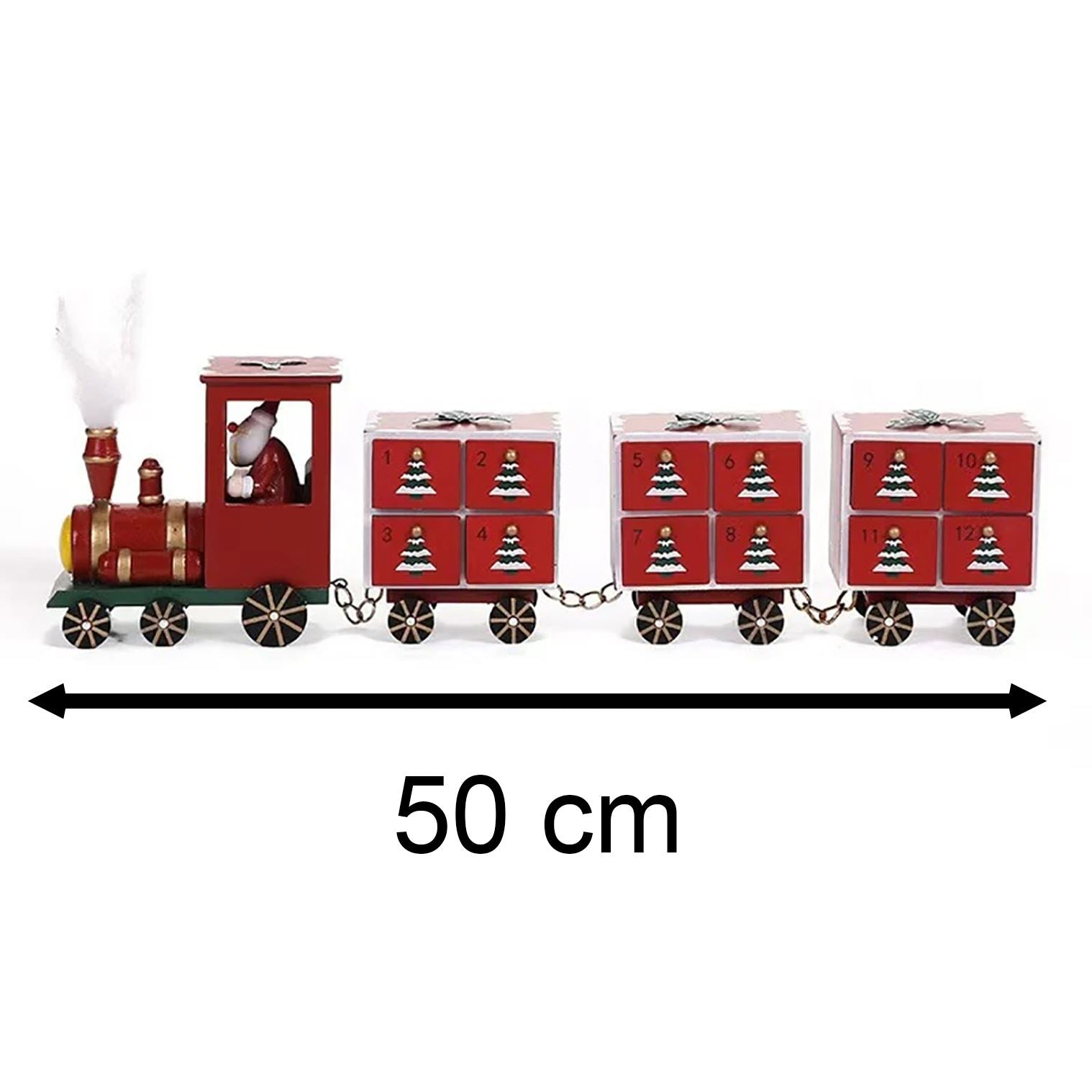 CHRISTMAS TRAIN ADVENT CALENDAR | Delight your little ones with a cheerful red wooden train featuring Santa and festive decorations for a magical countdown