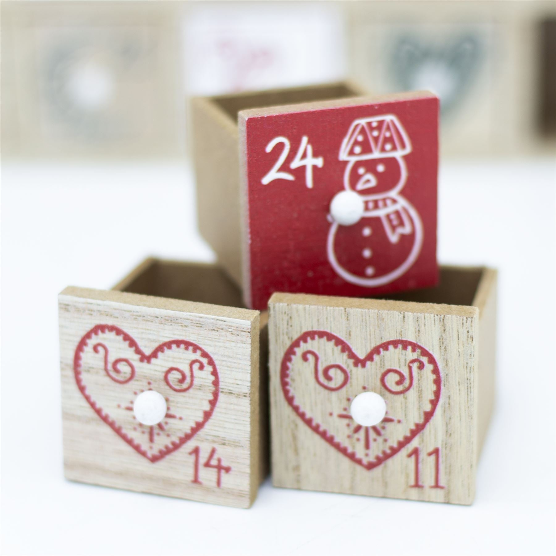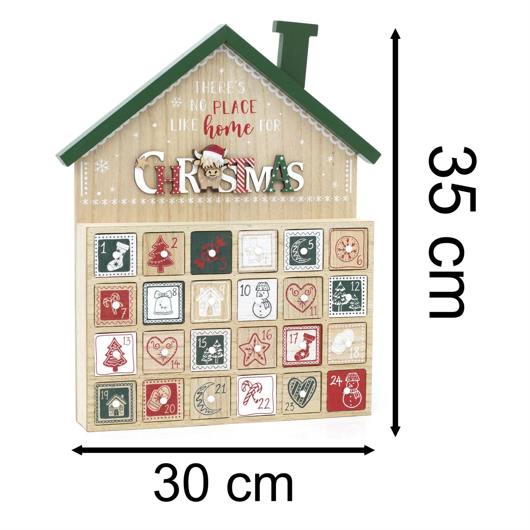 DIMENSIONS | Measures 30x35cm with 24 drawers of 3.5cm each, ideal for small gifts, sweets, or handwritten festive messages