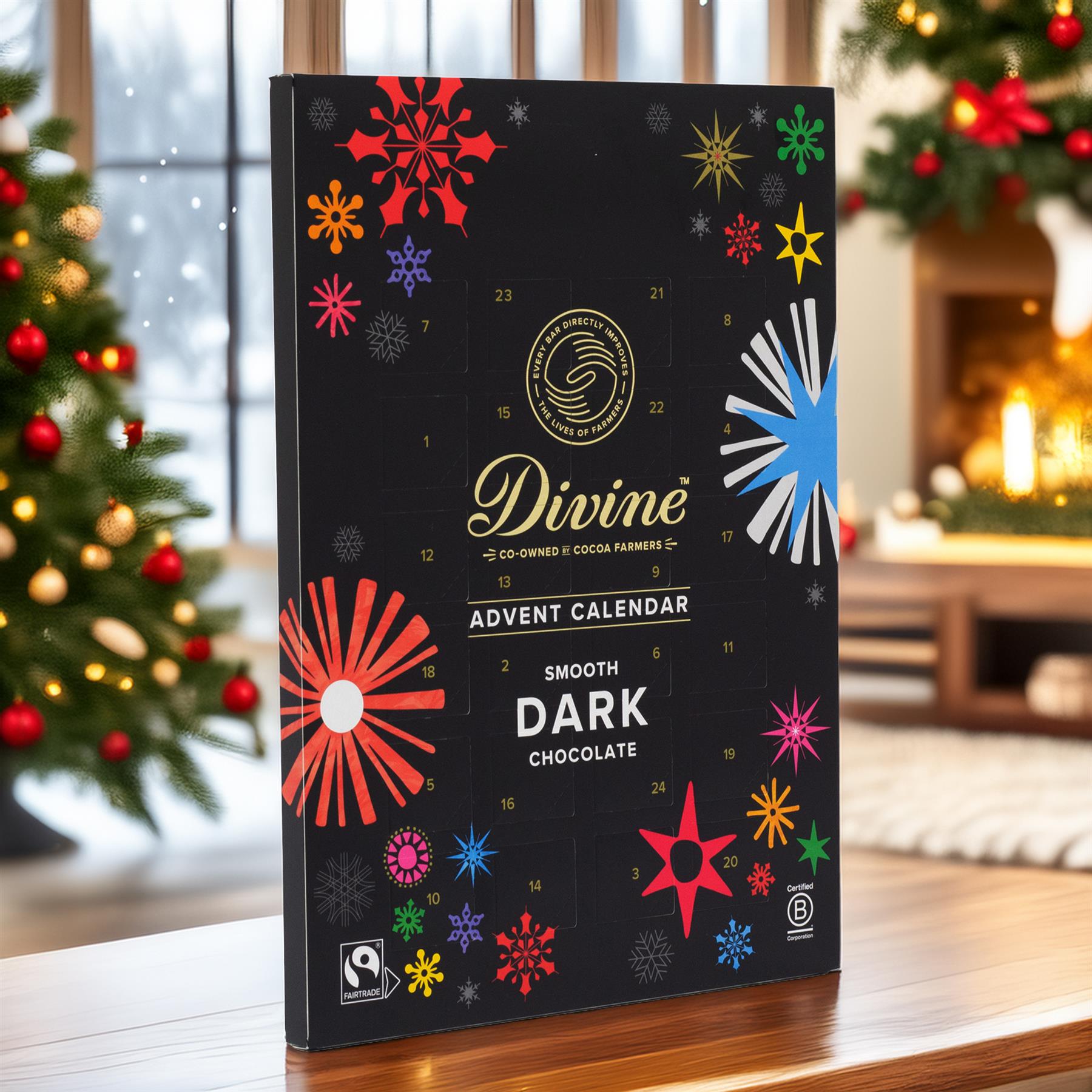 Divine Fairtrade Dark Chocolate Christmas Advent Calendar | 70% Cocoa Dark Chocolate Advent Calendar | Vegan Chocolate Christmas Calendar 85g