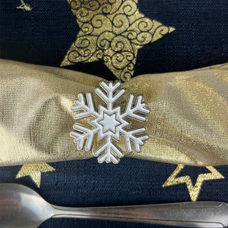 Set of 4 Gold & White Festive Napkin Holders | Snowflake Christmas Napkin Rings