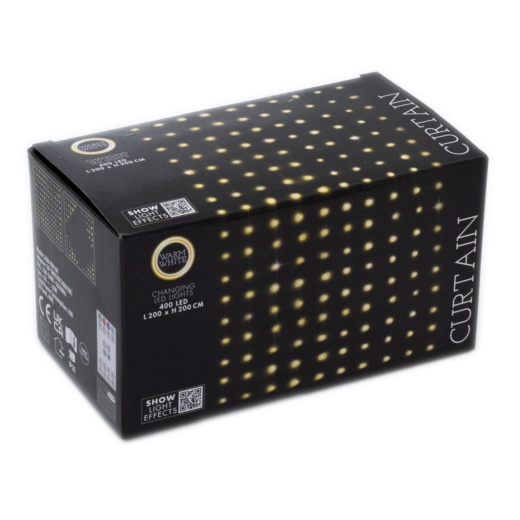 Create a warm, inviting atmosphere with these 400 Warm White LED Curtain Lights. Perfect for the festive season or special occasions, the soft glow suits any space. With a 5x2x2m size these lights offer stunning coverage. Control settings easily with the IR remote