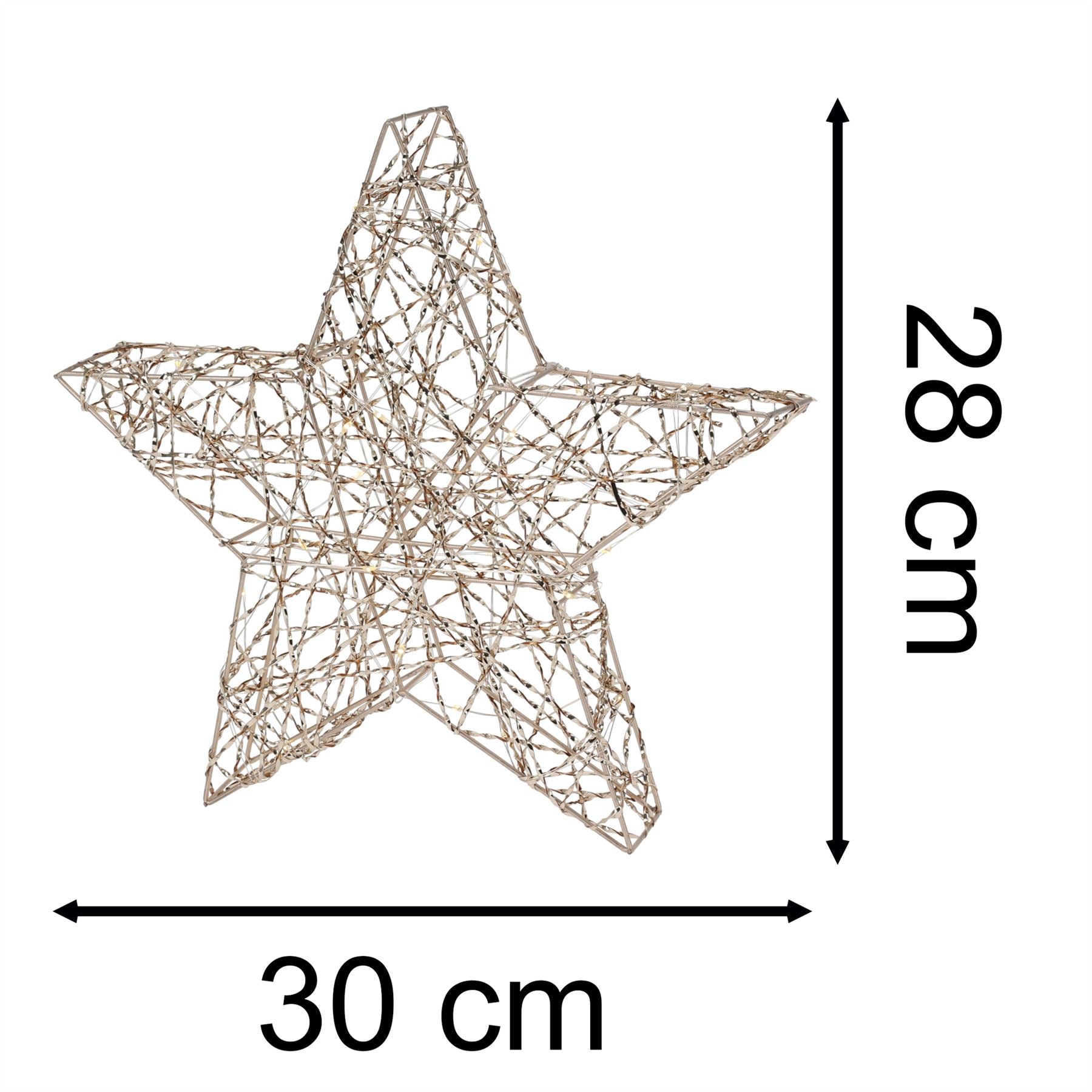 DIMENSIONS | Measuring 30x30 cm with a slim 5 cm depth, this standing star comes with a 30 cm lead wire for flexible placement