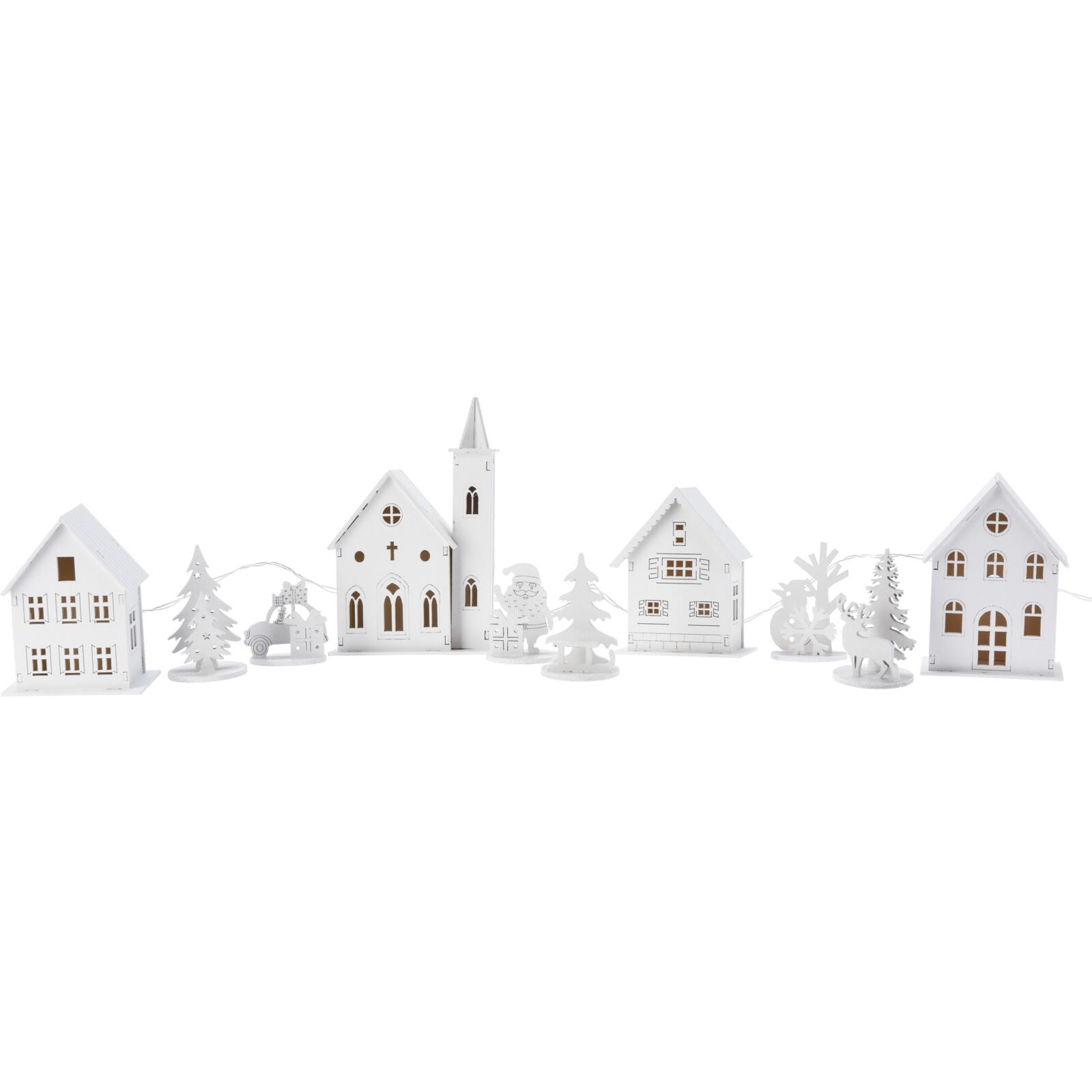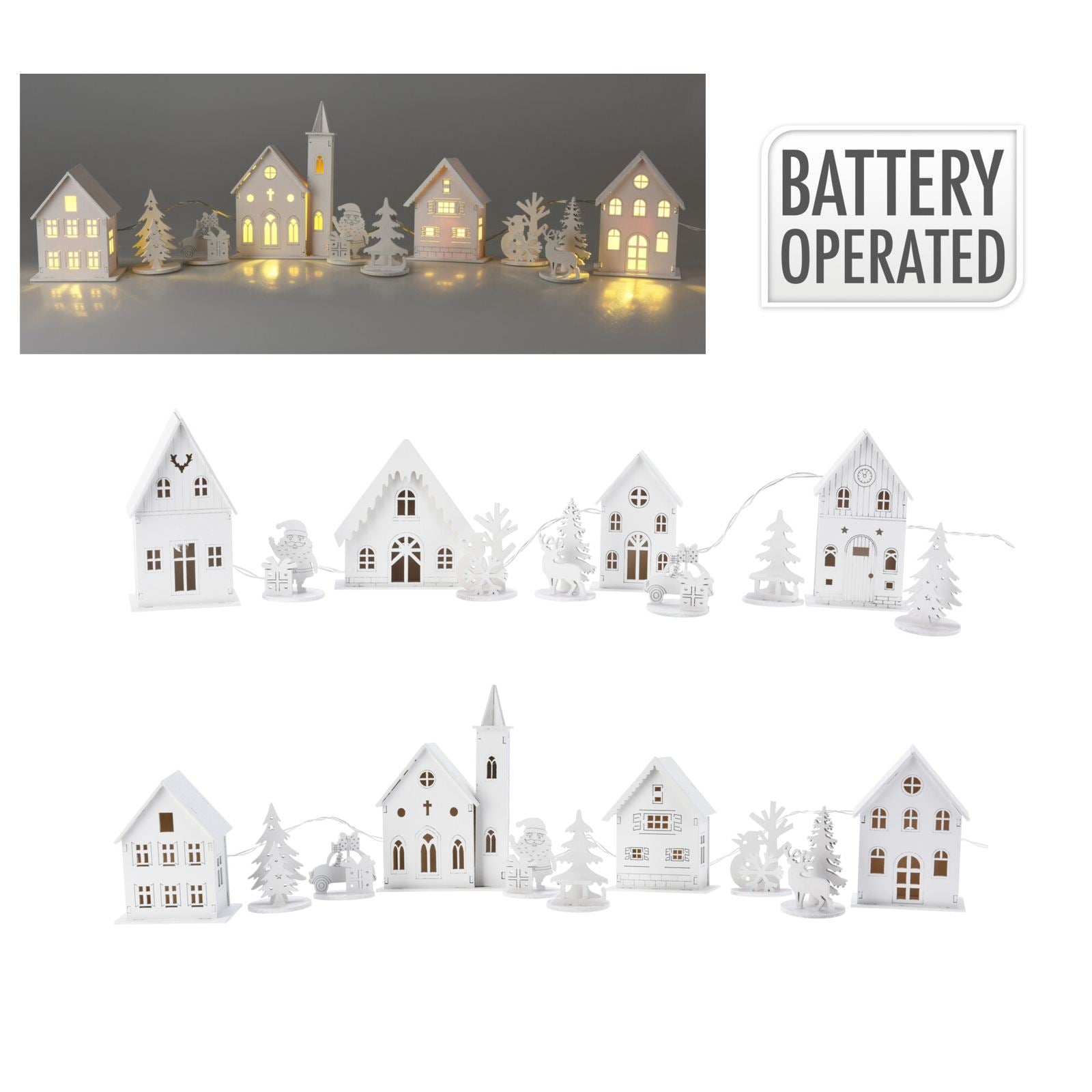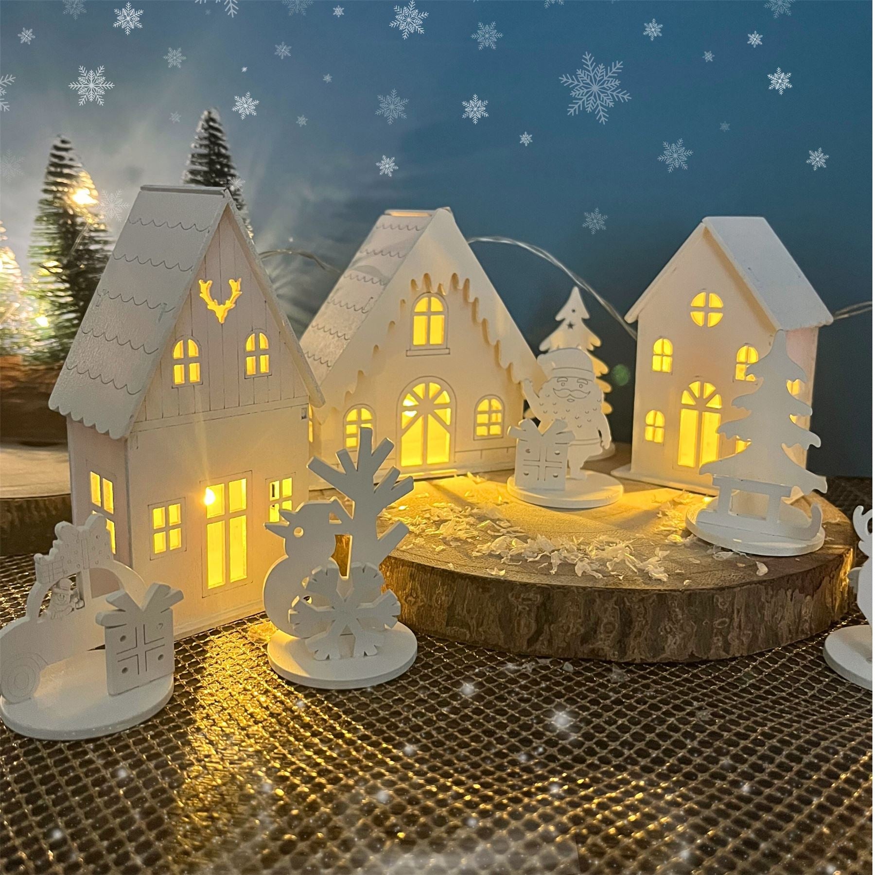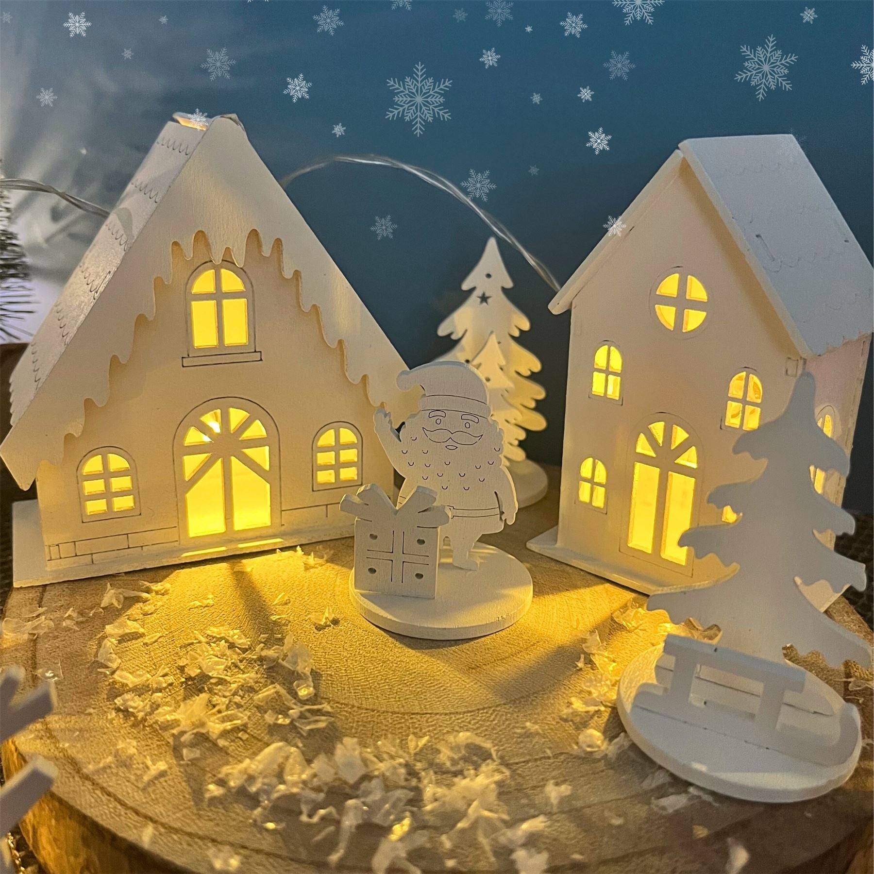 WHIMSICAL WINTER WONDERLAND | Create your own festive atmosphere with this charming 10-piece LED Christmas village scene, featuring beautifully crafted wooden houses that bring holiday cheer to your home