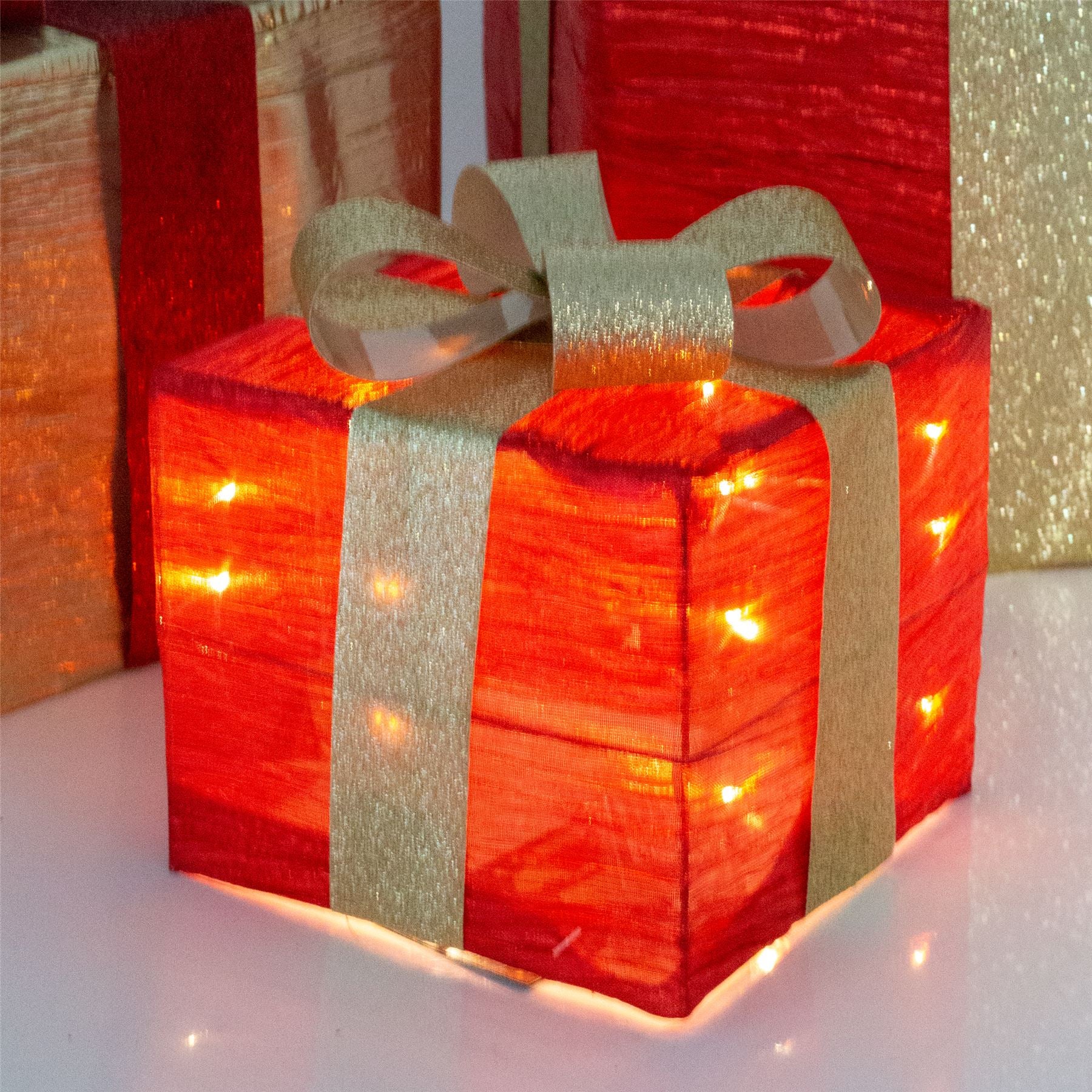 XMAS LIGHT UP GIFT BOXES | Pop out in the porch to greet your guests as they arrive for their sumptuous roast turkey banquet. Place on the stairs, position on the hearth or even under the tree