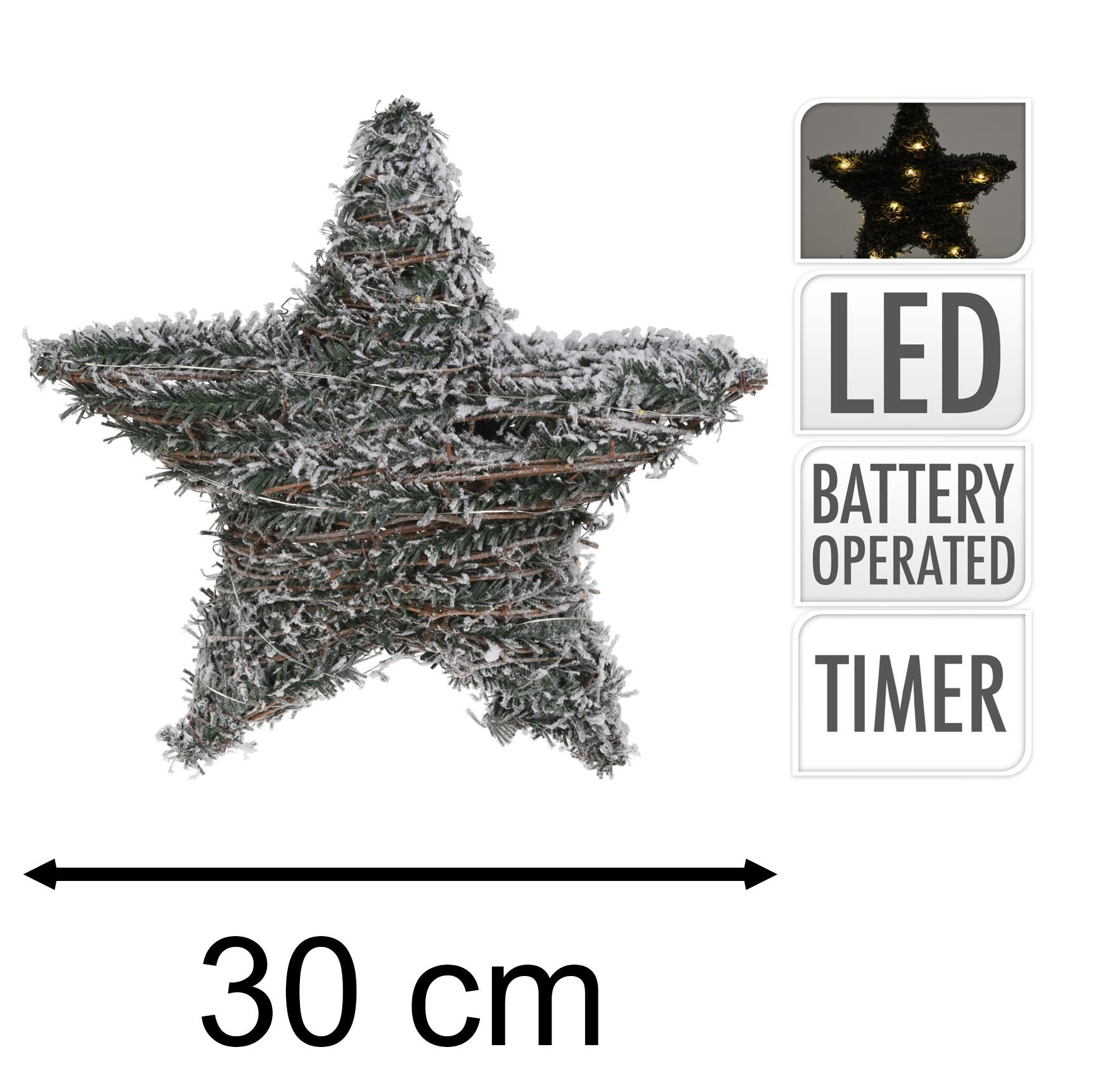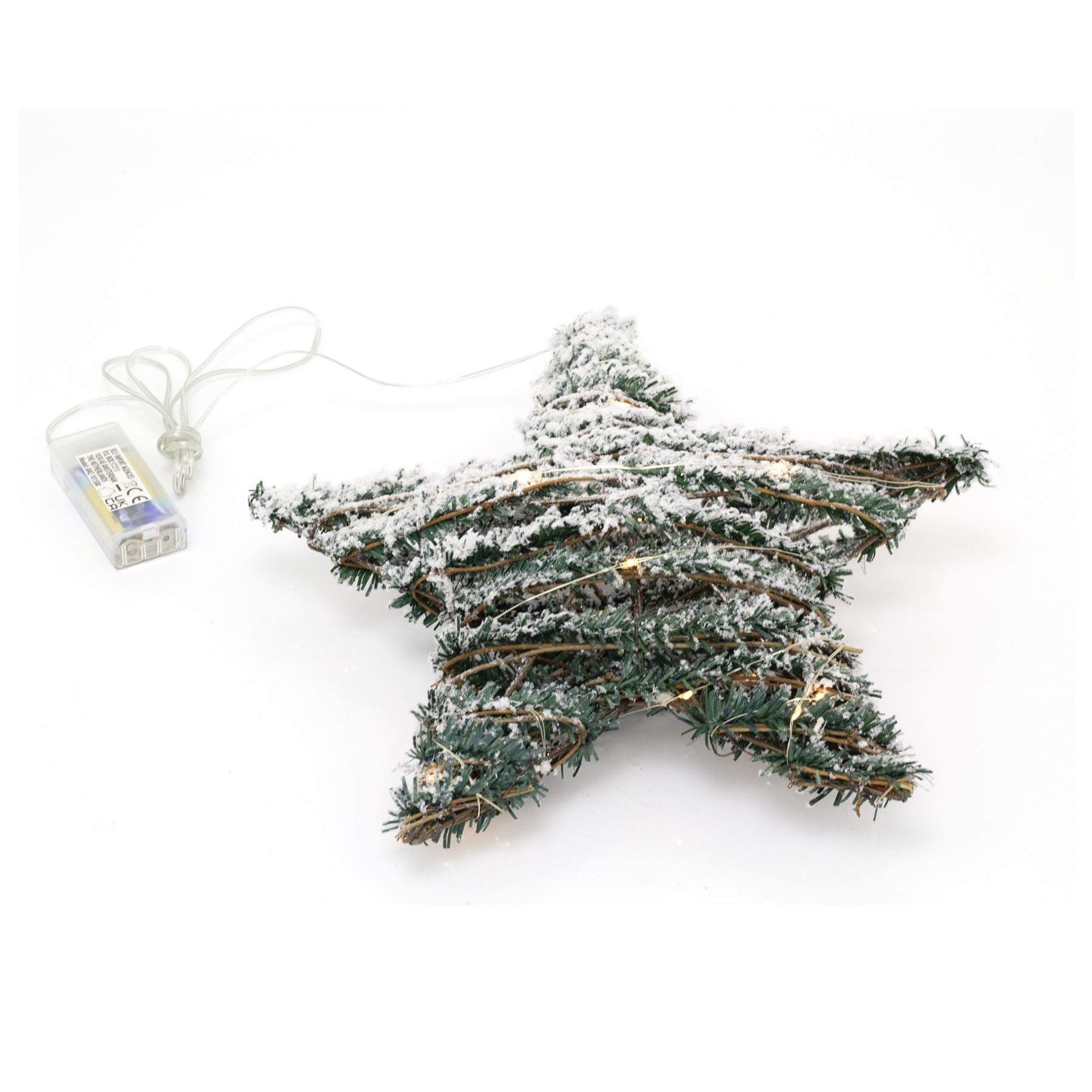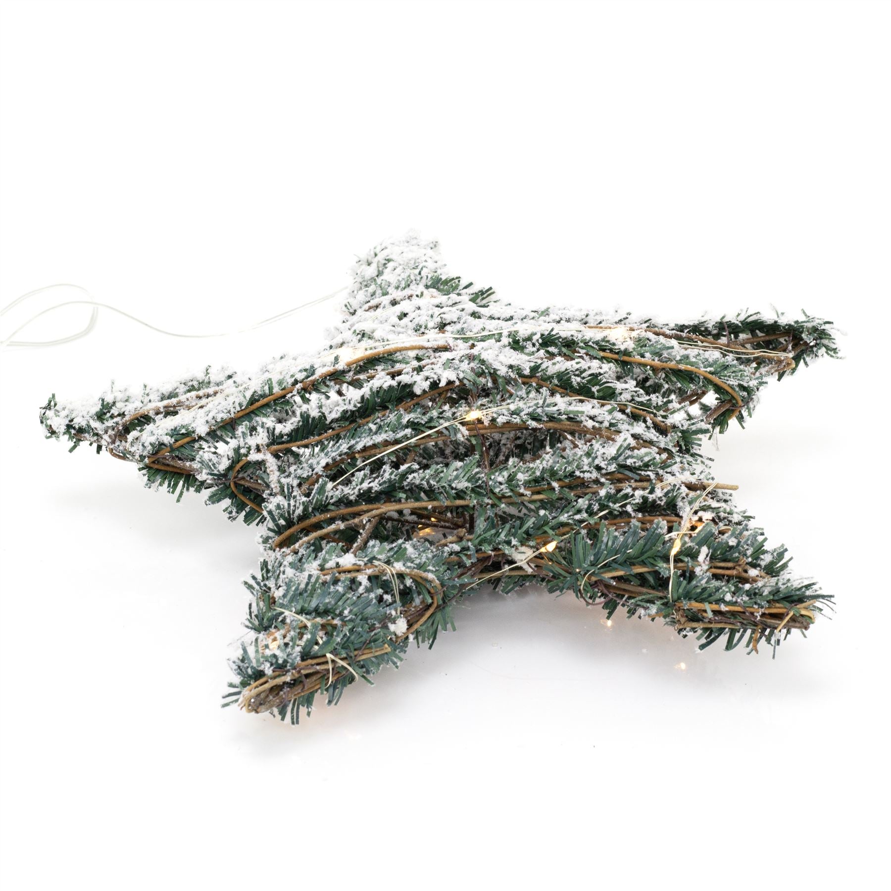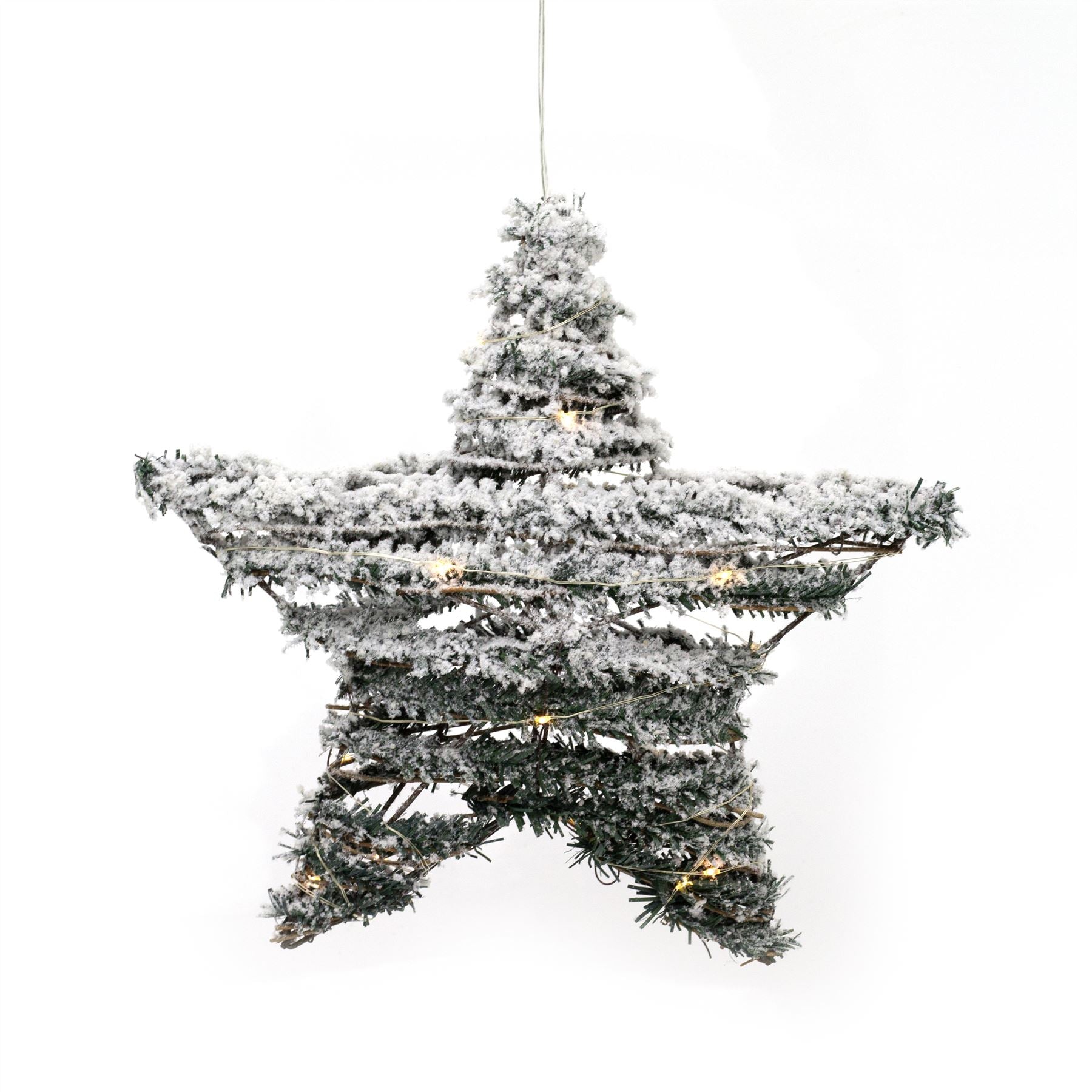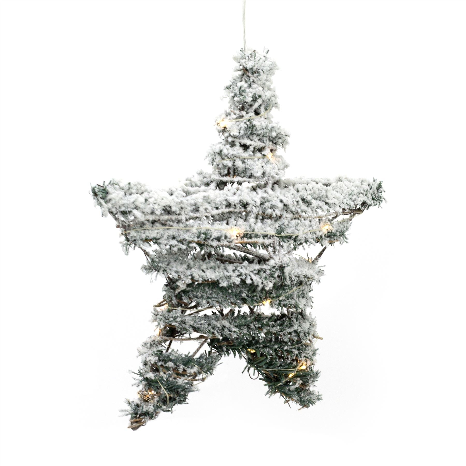 LIGHT UP STAR DECORATION | With a subtle appearance, mini LEDs are embedded into the wire, which has been delicately intertwined within the artificial foliage to create these stunning light up Christmas stars. It measures 30 cm