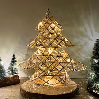 Illuminated Jute Christmas Tree with Glitter | Warm White LED Tree Light - 30cm