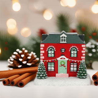 Red Christmas House Incense Burner Festive Cottage Ornament with Cinnamon Cones