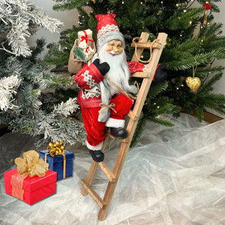 Santa on a Ladder Figurine | Traditional Climbing Father Christmas Decoration - 65cm