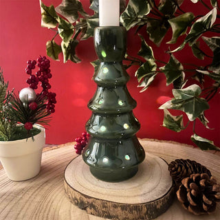 LED Christmas Tree Candlestick | Light-up Green Ceramic Christmas Candle Holder