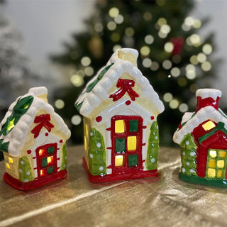 Ceramic LED Christmas House | Light Up House Christmas Village Ornament - 11cm