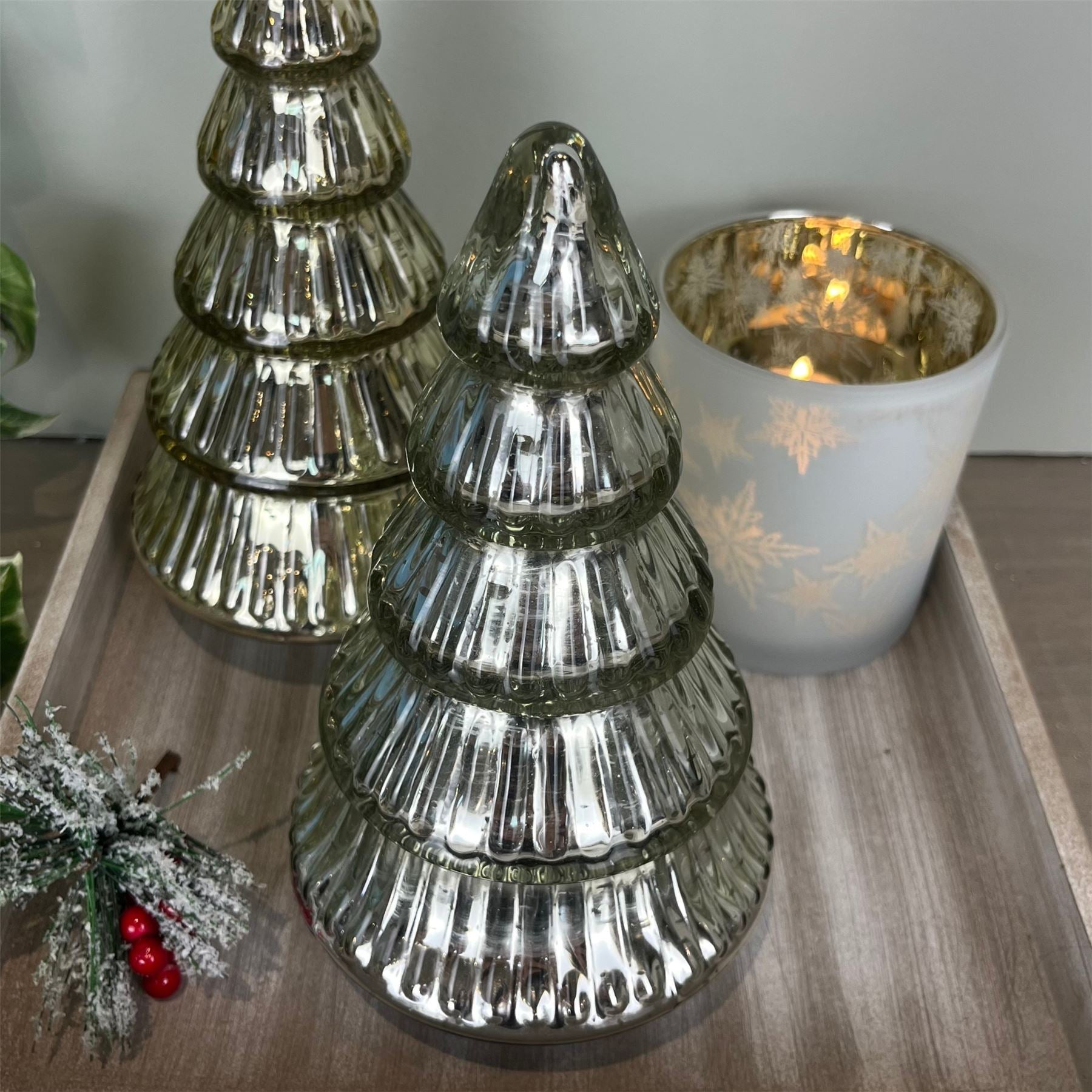 HOME DECOR | Made from glass, this Christmas Tree beautiful silver hue adds a luxurious touch that never goes out of style, ensuring it remains a cherished piece for years to come. Please note: Each order will receive a randomly selected design