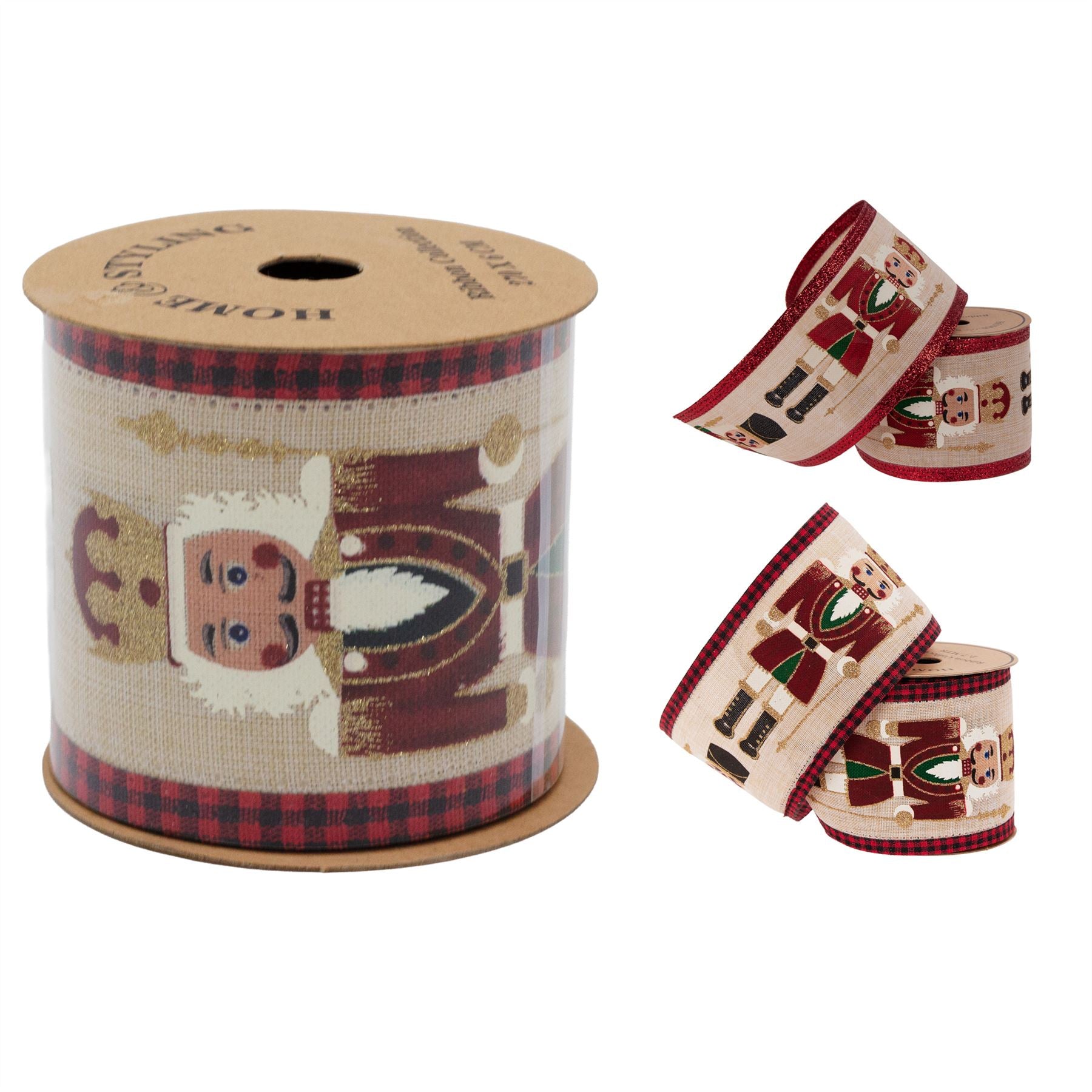 Add rustic charm to your Christmas decor with this luxury fabric Nutcracker ribbon. With wired edges for easy shaping, it’s perfect for trees, wreaths, or festive gift wrapping