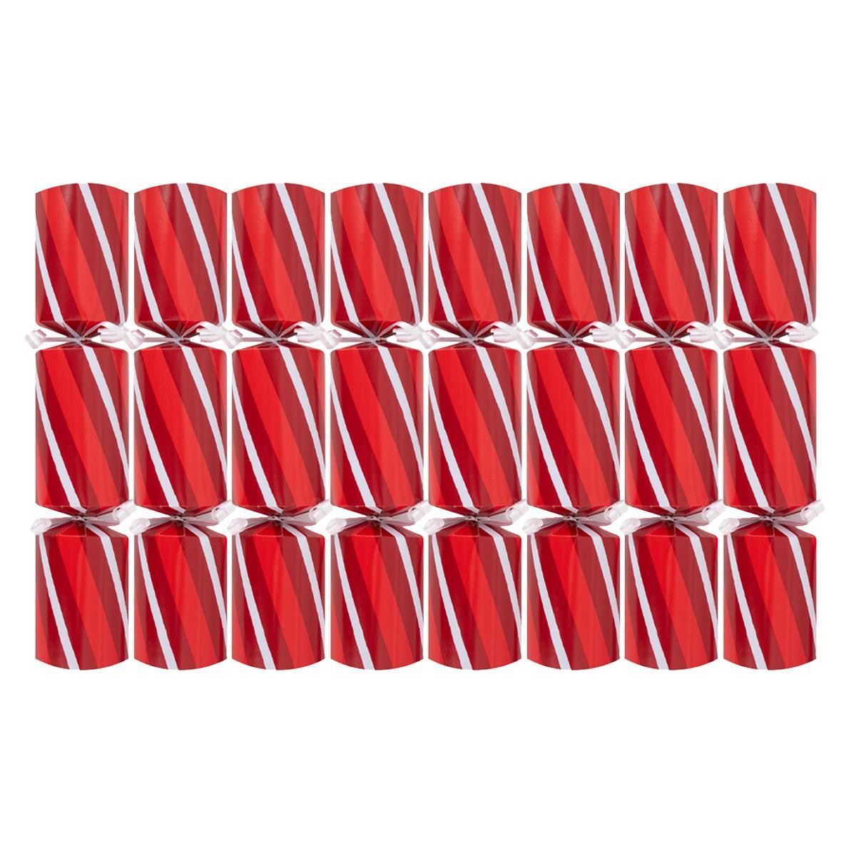 PLAYFUL DESIGN | Featuring a red and white striped cracker design, finished with curling white ribbons, a charming, traditional touch for your Christmas table
