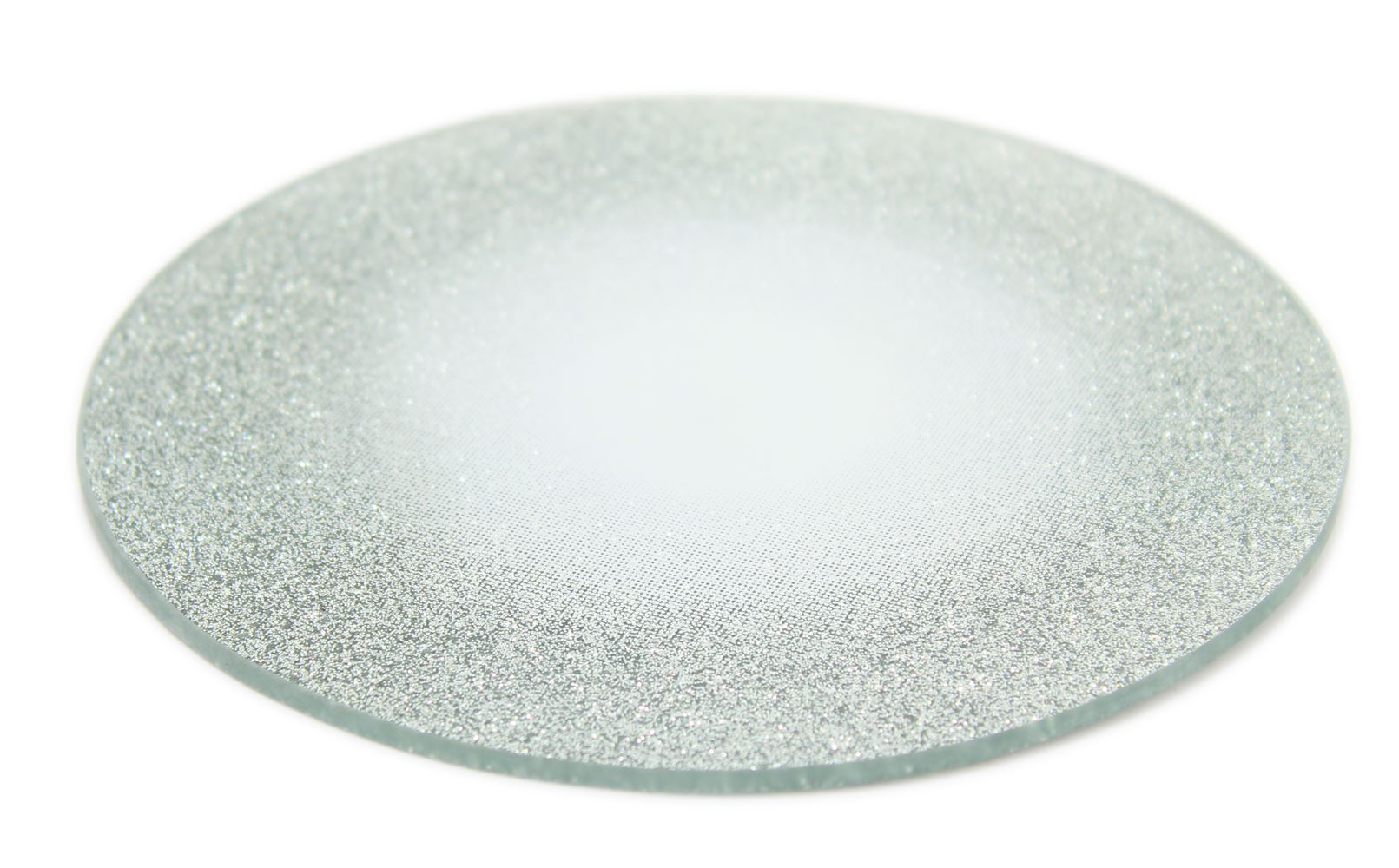 Lovely round sparkly plates each with a silver glitter mirror effect to the underneath of the glass - perfect for adding something eye catching at home or creating that very special look and feel at wedding events, these silver candle plates are both prac