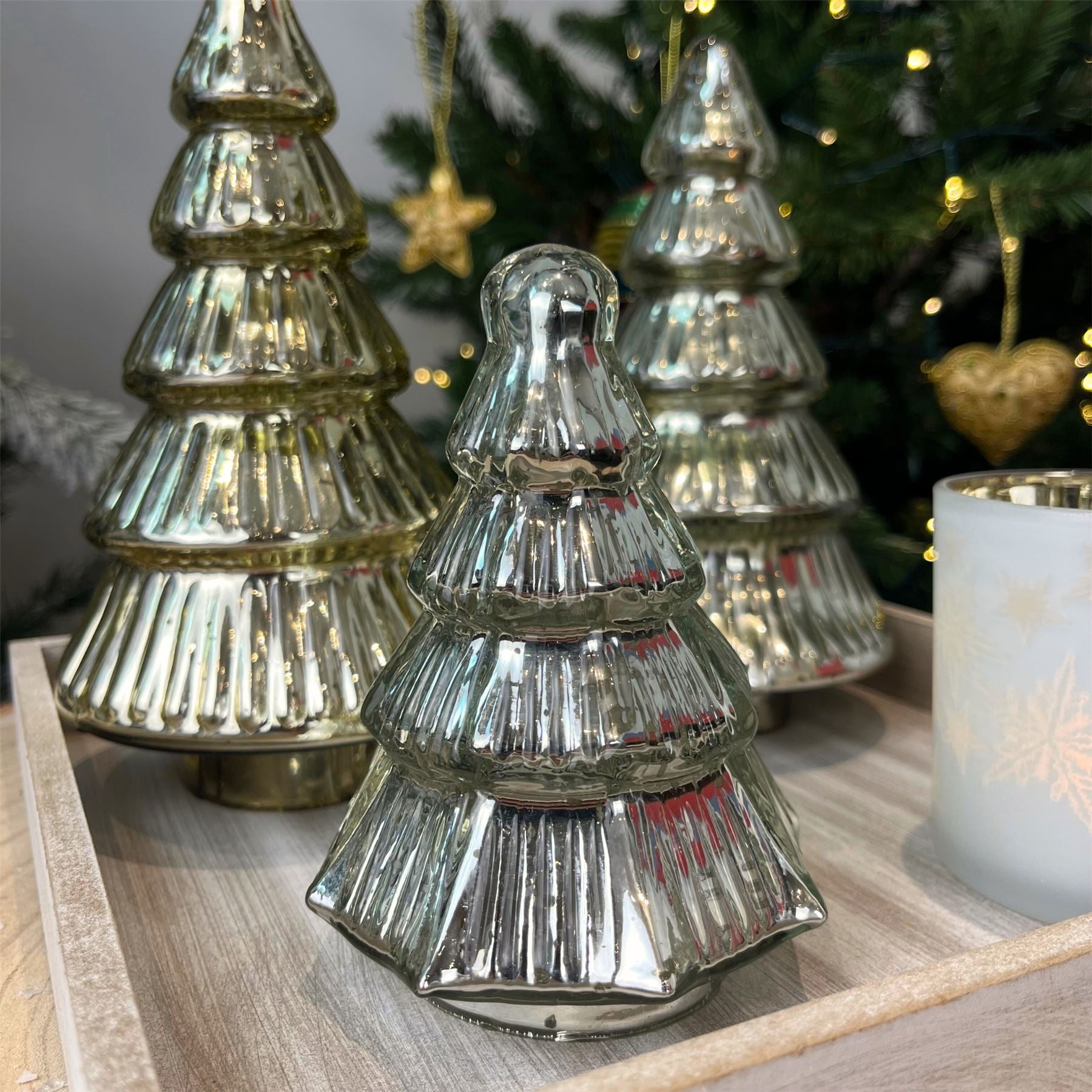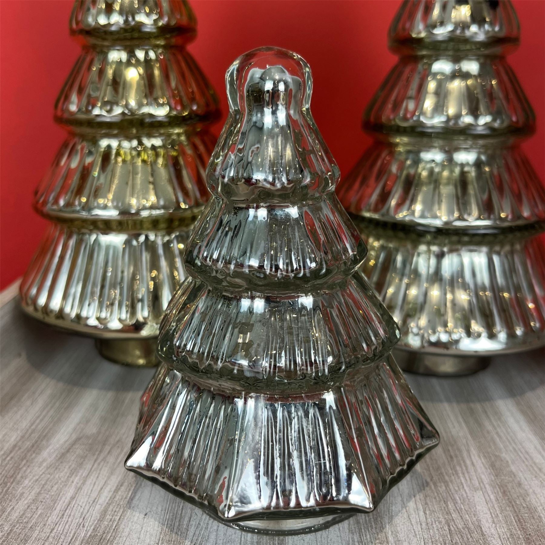 GLASS CHRISTMAS TREE | This stunning Silver Glass Christmas Tree is not just any decoration; it’s a dazzling work of art! Crafted from high-quality glass and finished in an exquisite silver, it brings a sophisticated elegance that will instantly brighten your festive decor