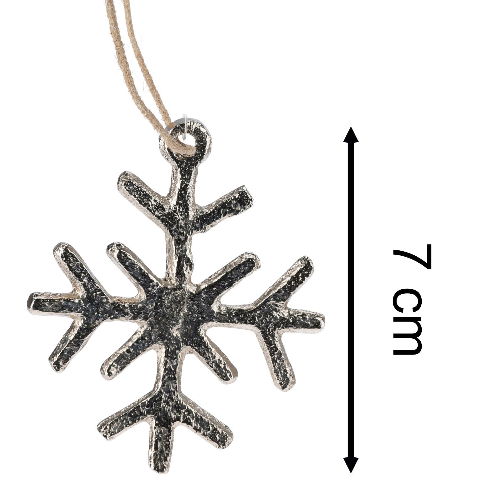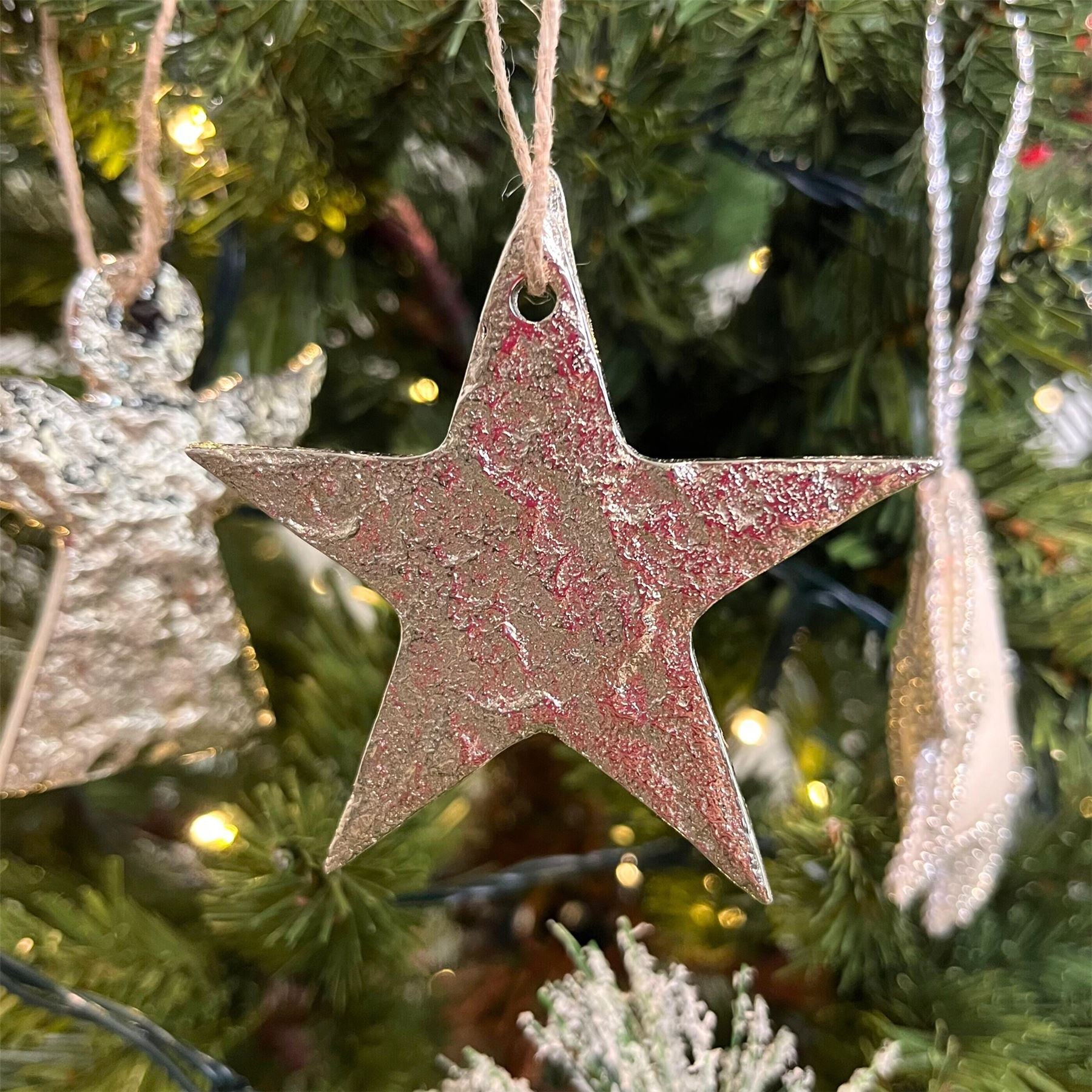 Add rustic chic to your holiday decor with these metal Christmas ornaments. Featuring a distressed finish and festive shapes like stars, snowflakes, and angels, each ornament is perfect for creating a cosy atmosphere. Easy to hang with natural twine, these durable, 7cm ornaments are reusable and come in a random design