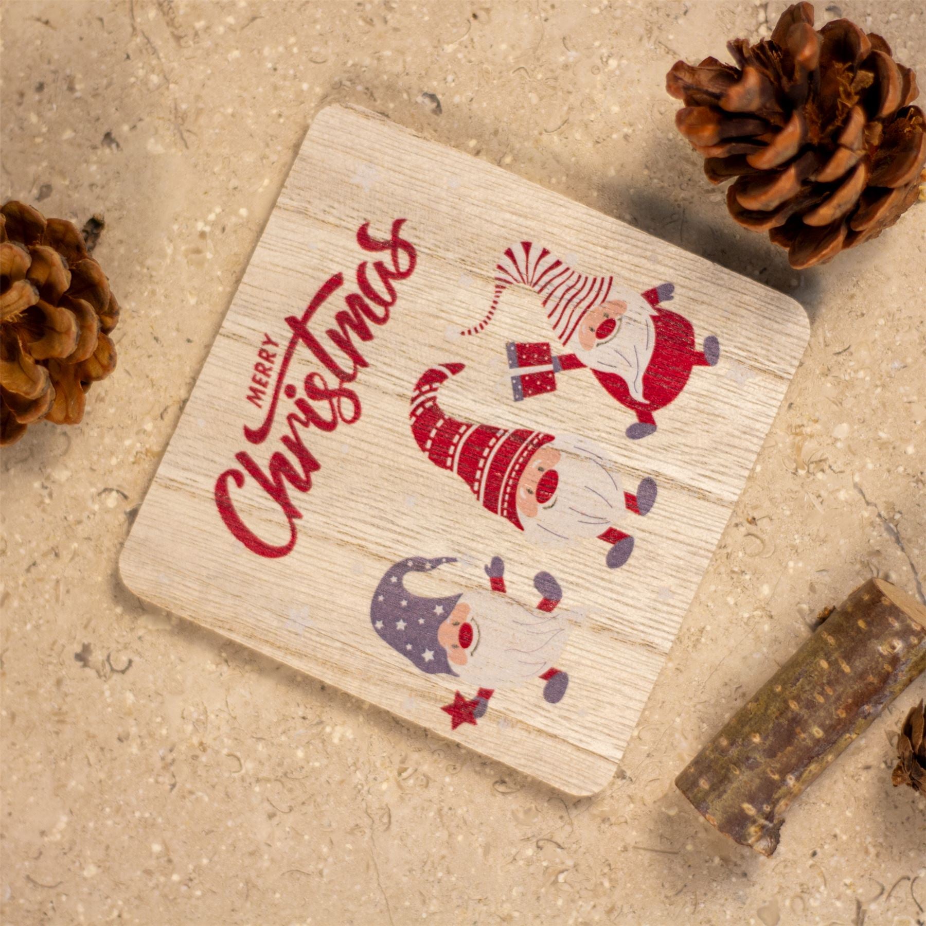 CHRISTMAS COASTERS | Each coaster in our Merry Christmas coaster set measures a generous 10x10cm, providing ample space to accommodate a variety of drinkware