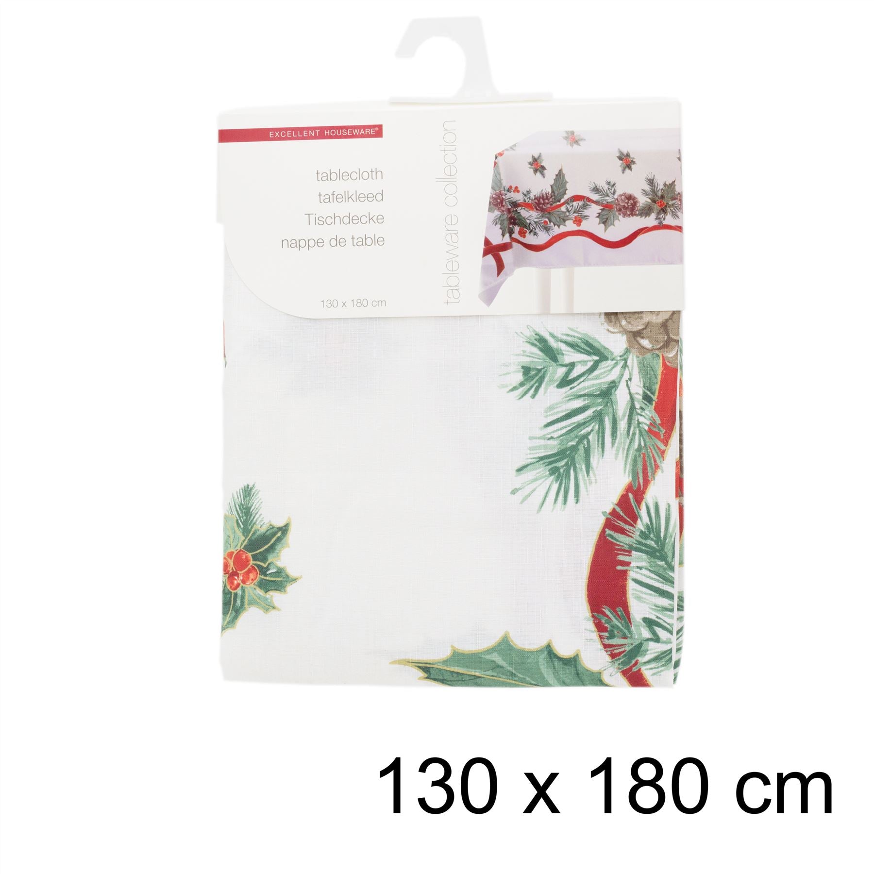 Traditional Rectangle Christmas Tablecloth | Pine Cone And Holly Festive Table Cloth | Xmas Table Cover Christmas Table Decoration 180cm X 130cm
