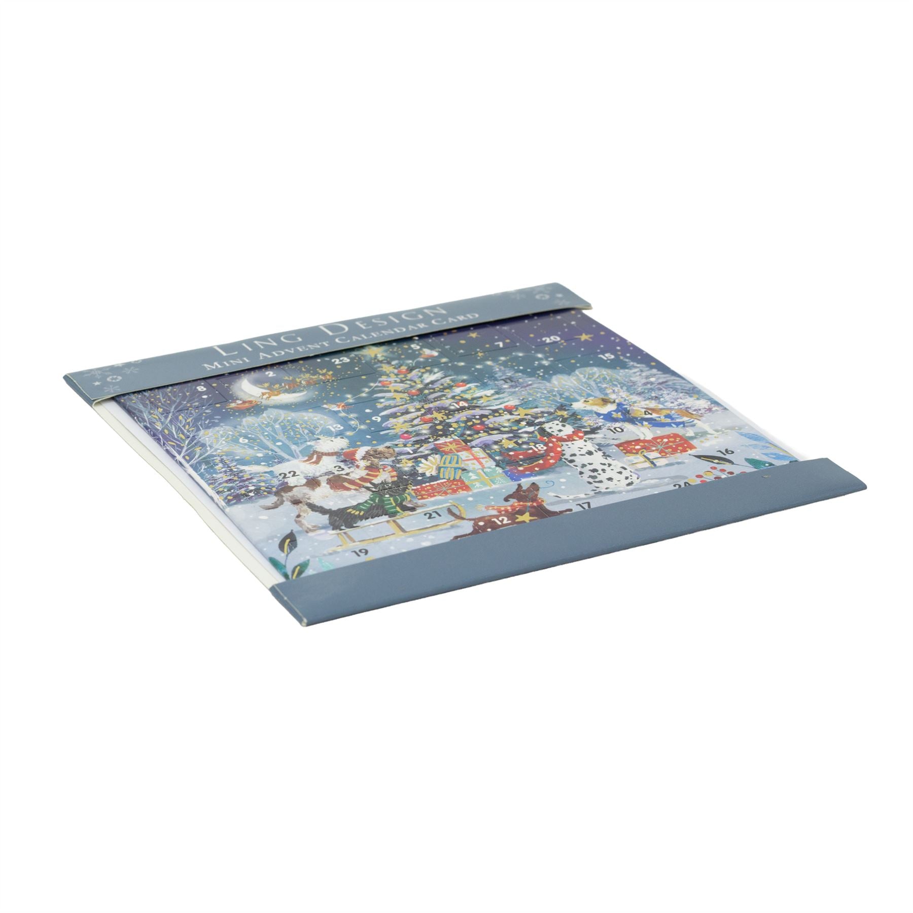 Countdown to Christmas with this festive dog advent greetings card, featuring 24 windows, a glowing tree, snowy details and a cheerful holiday message