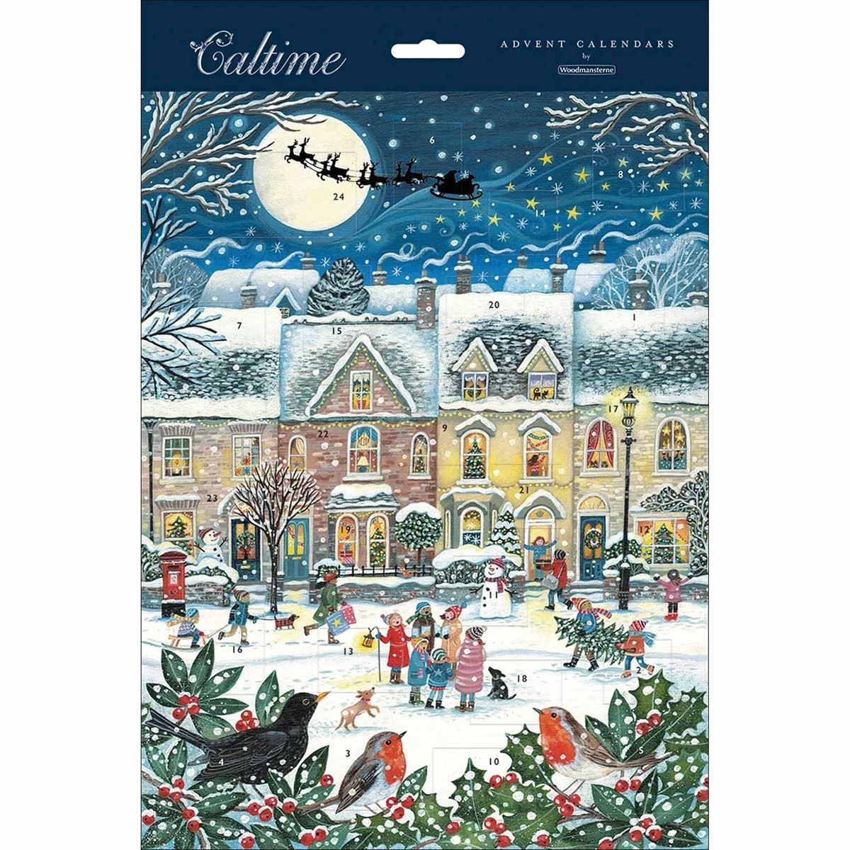 ADVENT CALENDAR | A traditional picture advent calendar with a vibrant festive village, Santa’s sleigh in the sky, and 24 doors to open