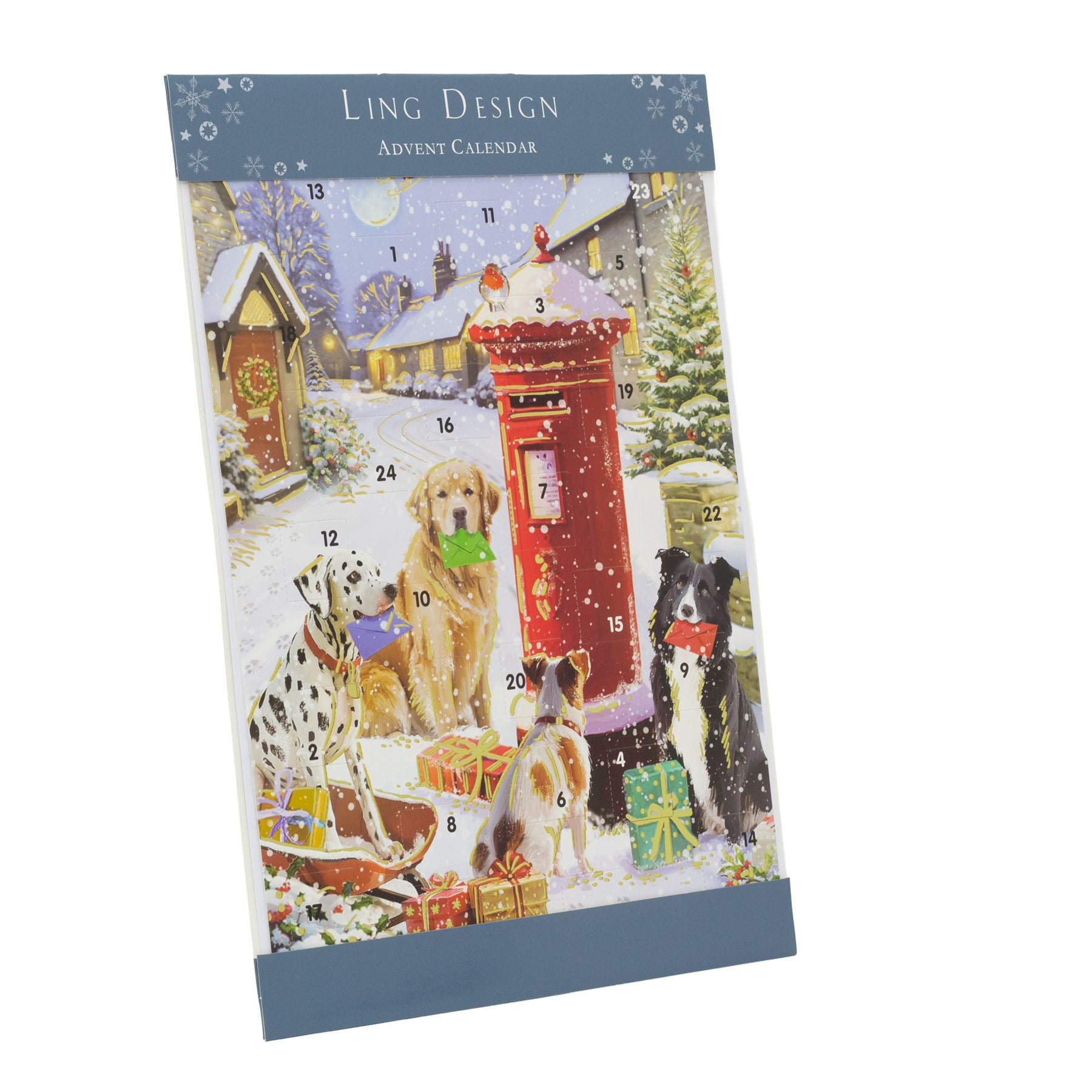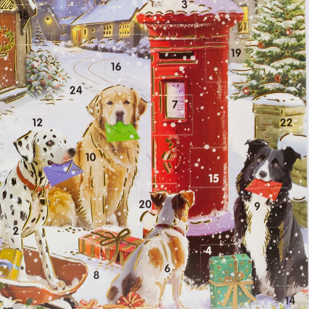 Bring festive cheer to December with the Christmas Delivery Advent Calendar! This traditional paper calendar features 24 windows to open, each hiding a festive surprise behind a snowy village scene with dogs, presents, and a robin