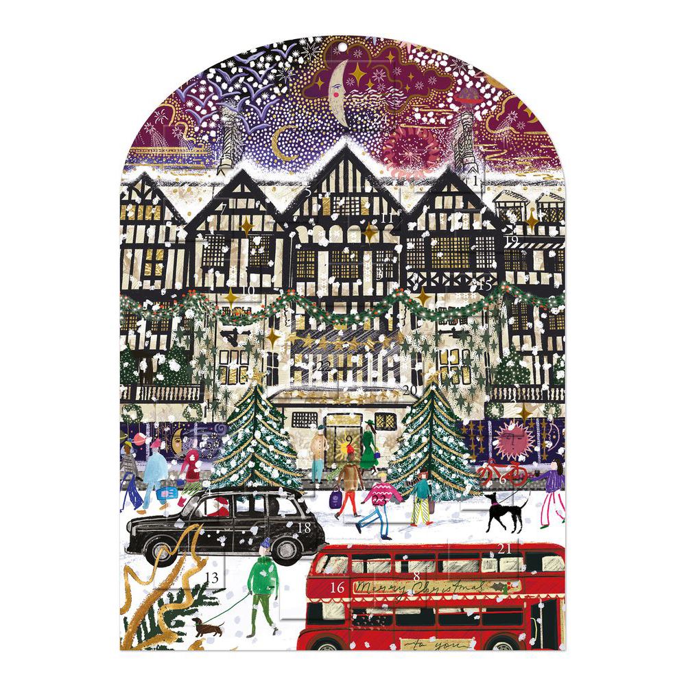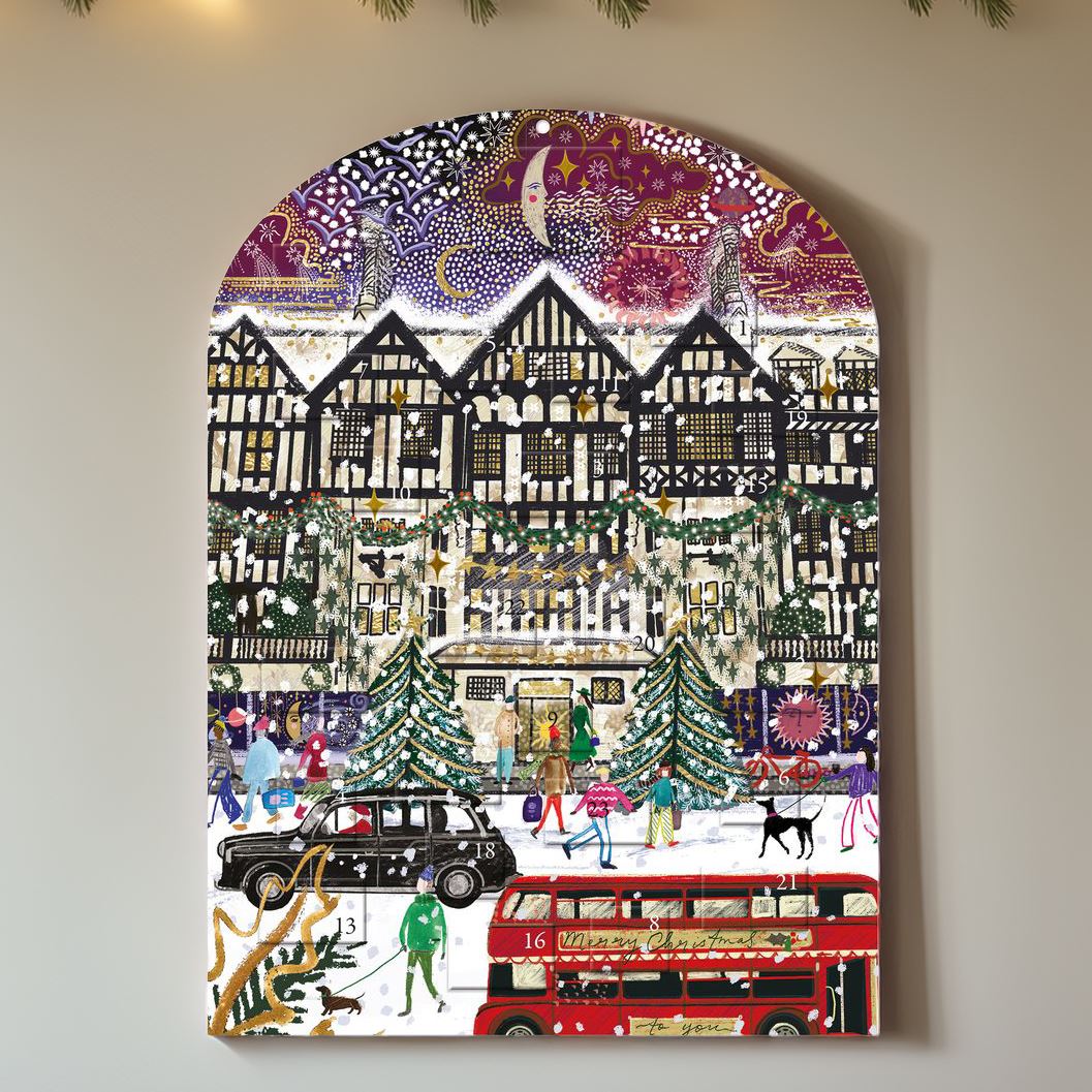 Bring the charm of a snowy London street to your December with this traditional advent calendar, featuring 24 festive windows and twinkling holiday scenes