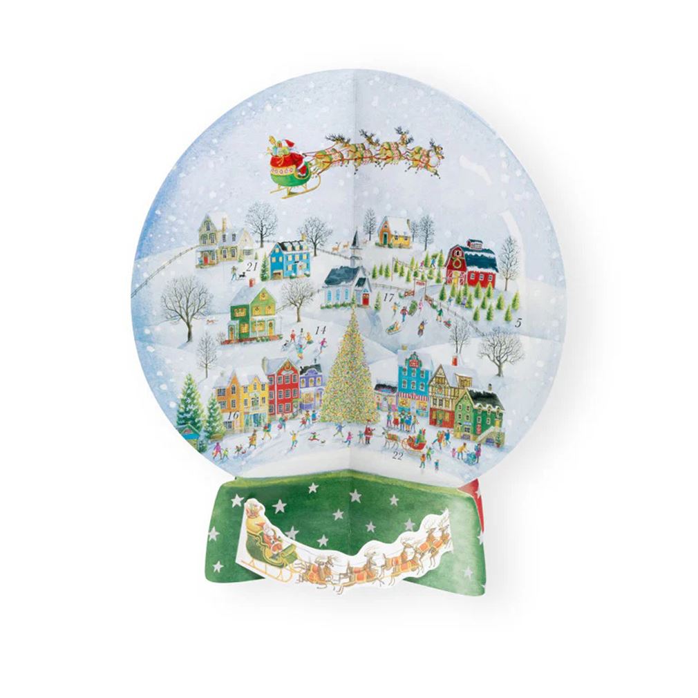 SNOW GLOBE ADVENT CALENDAR | Measuring 32cm, this pop-up snow globe advent calendar is a standout piece that enhances your seasonal decor with its unique design and festive flair