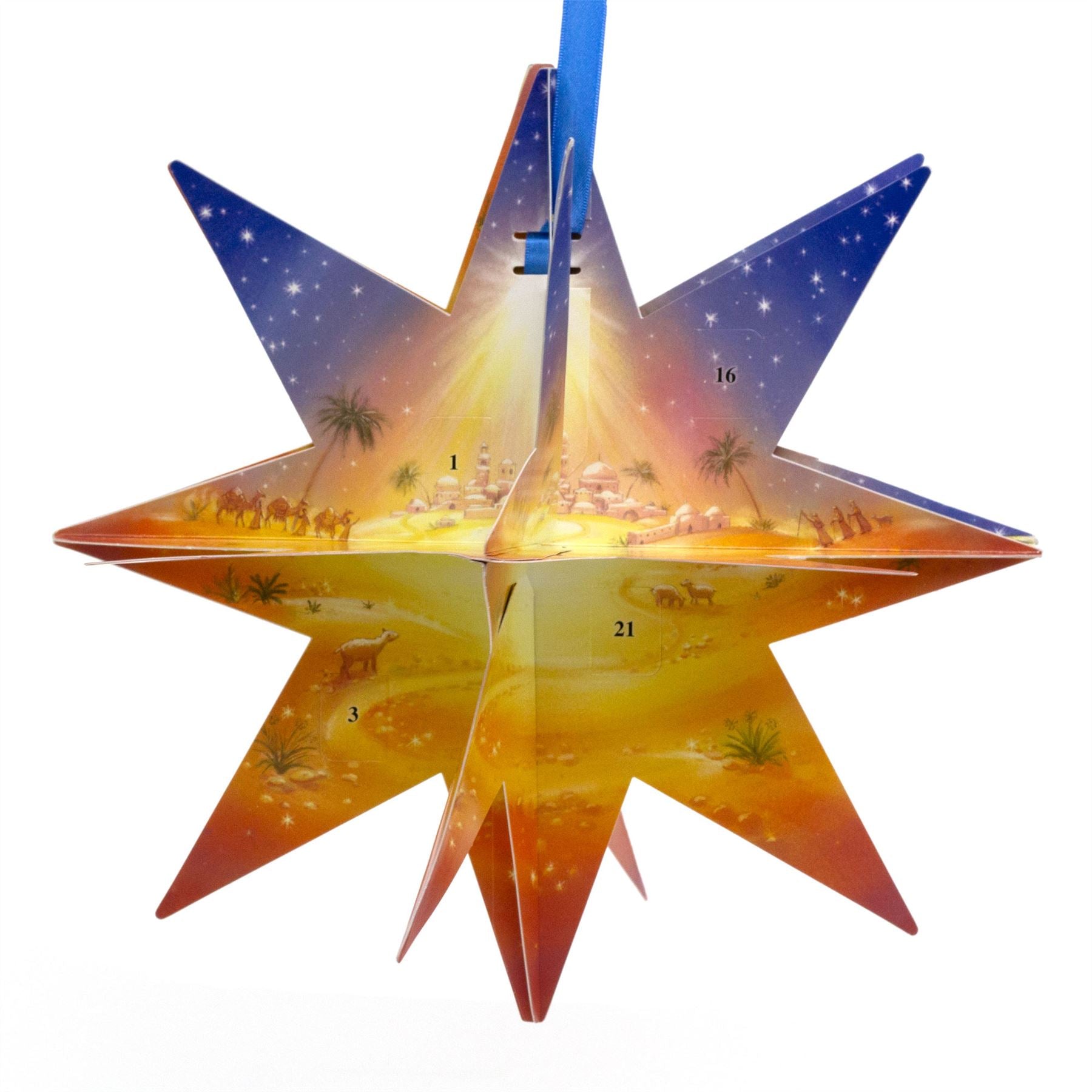 Celebrate the magic of Christmas with the 3D Star of Bethlehem Advent Calendar. This stunning, star is more than just an advent calendar; it's a decorative piece that will bring joy to your home throughout the festive season. Illustrated with images of Bethlehem, the three wise men, and shepherds, the calendar captures the spirit of Christmas with traditional charm. Each door opens to reveal a delightful, intricately illustrated image, adding a new layer of excitement to the festive countdown