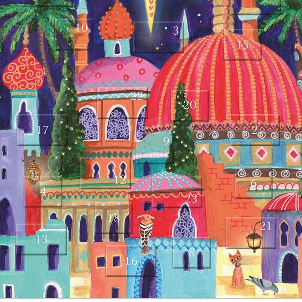 Countdown to Christmas with this traditional advent calendar, revealing 24 windows of festive scenes from a bright and magical city under the Star of Bethlehem