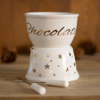 Chocolate Fondue Set | White Ceramic Tea Light Candle Fondue Pot with 2 Forks