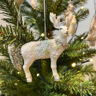 White Reindeer Christmas Tree Bauble | Resin Stag Christmas Tree Ornament - 10cm