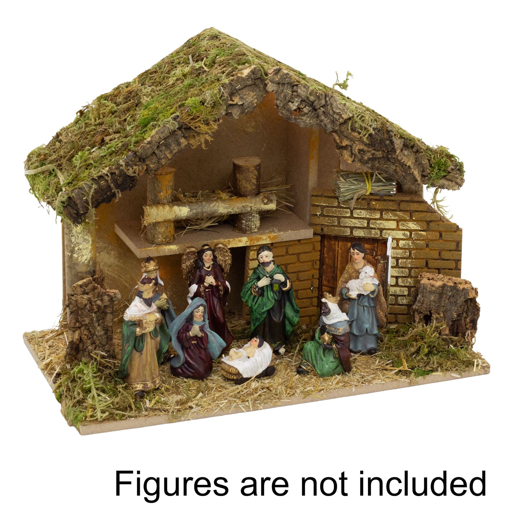 TRADITIONAL NATIVITY STABLE | Create a heart-warming Christmas display with this beautifully crafted nativity scene, featuring natural moss and bark for a rustic, authentic look