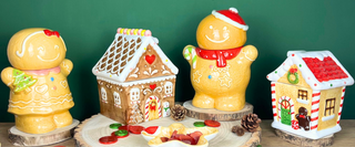 Spice up Christmas with gingerbread-themed tableware and serveware! Delight in gingerbread houses, plates, snack bowls, salt and pepper shakers, and crockery, all featuring charming gingerbread designs. Festive and fun!