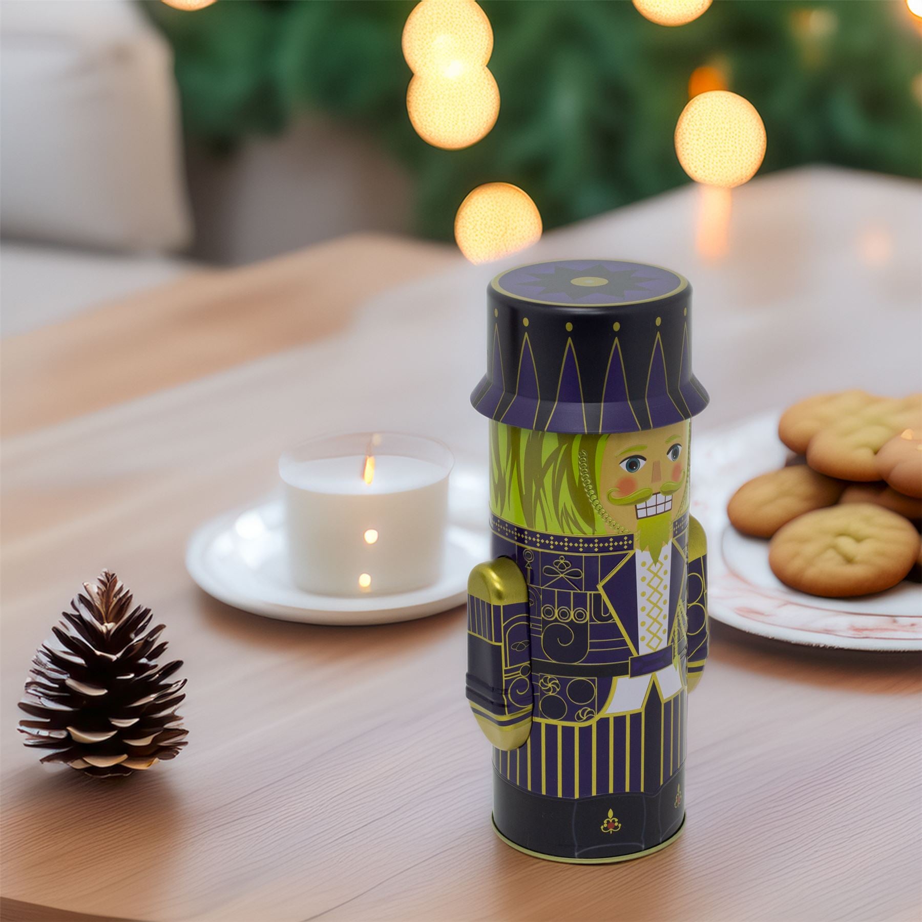 WHIMSICAL NUTCRACKER TIN | Bring festive magic to your kitchen with this colourful 3D Nutcracker soldier tin, perfect for storing cookies, sweets, or chocolates