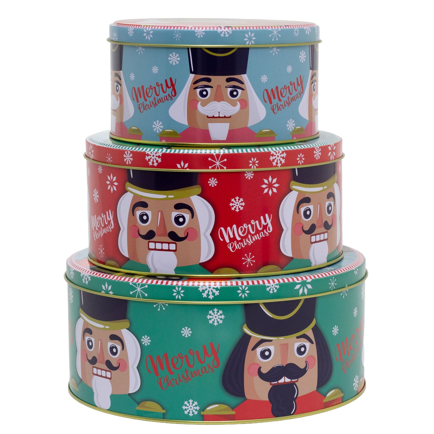 NUTCRACKER CHRISTMAS TINS | Add a splash of festive fun with this set of 3 tins decorated with colourful nutcracker designs and cheerful Christmas motifs